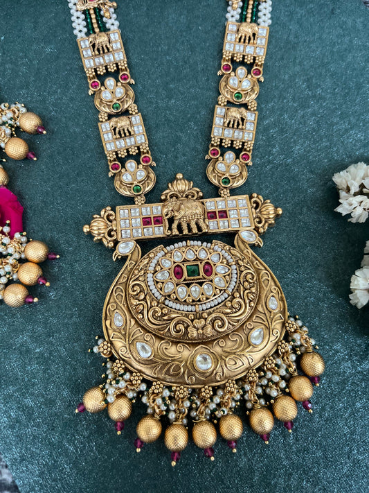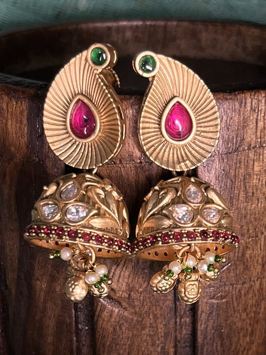 Elegant pachi kundan studded rajwadi gold jhumkas