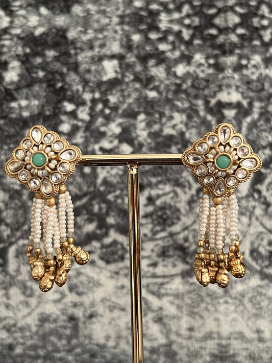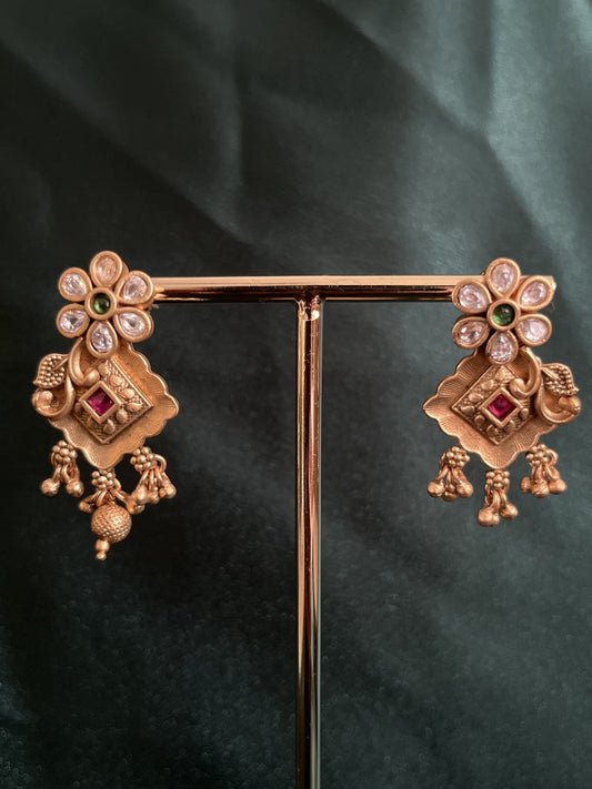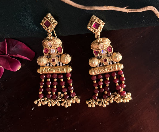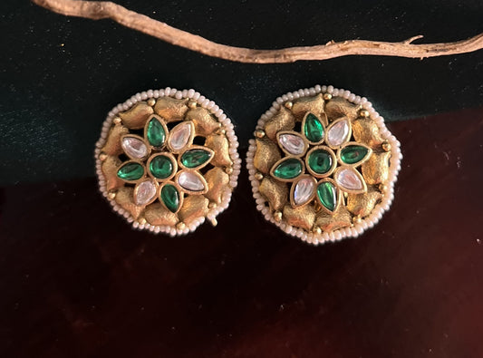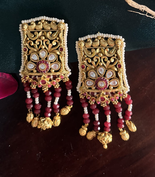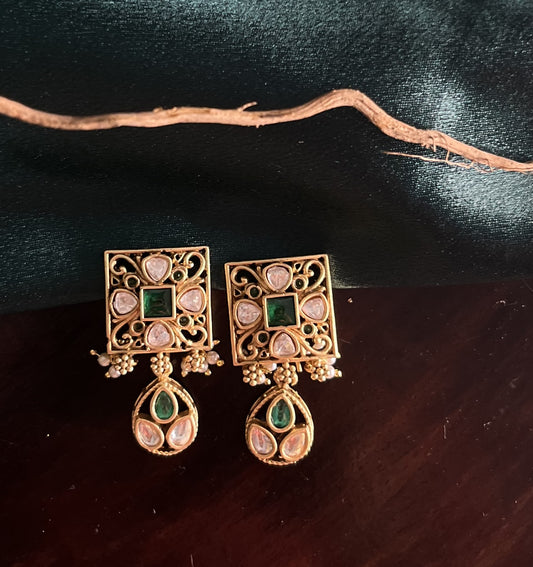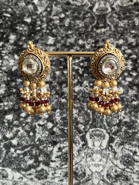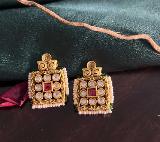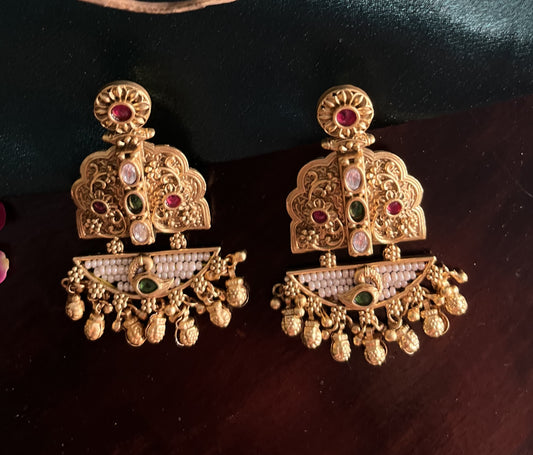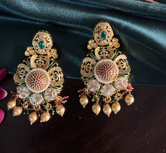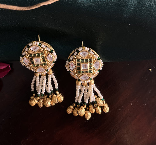 Elegant pachi kundan studded rajwadi gold jhumkas