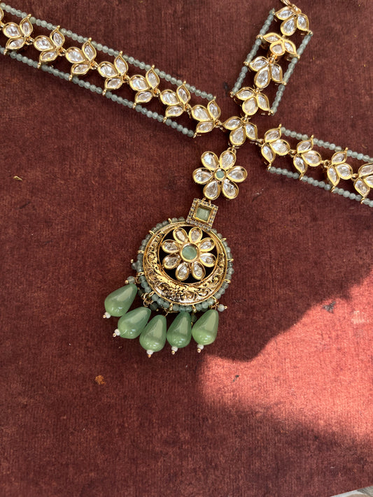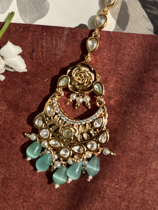 Premium parab kundan Mathapatti with tika attached