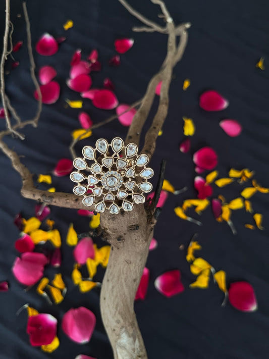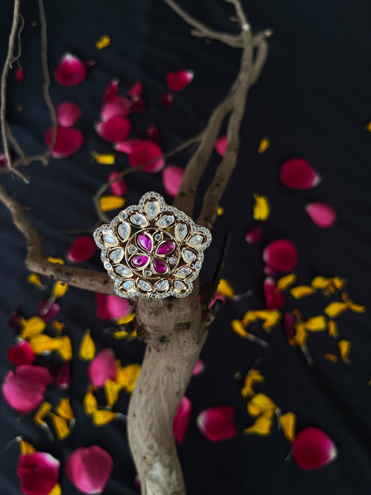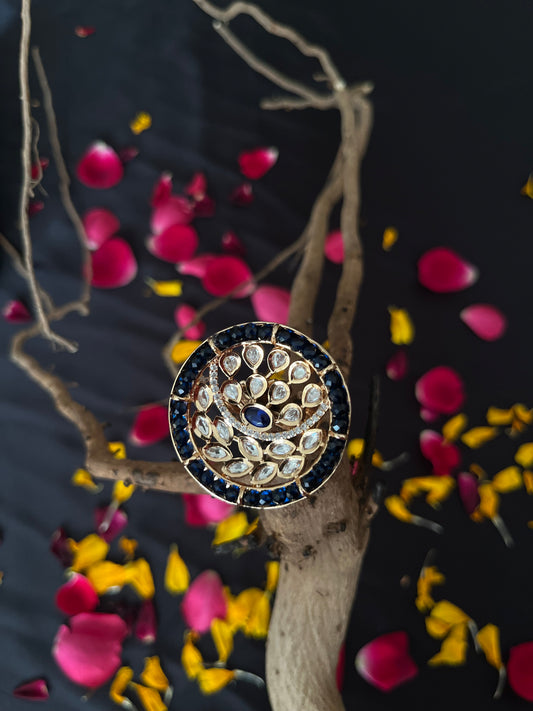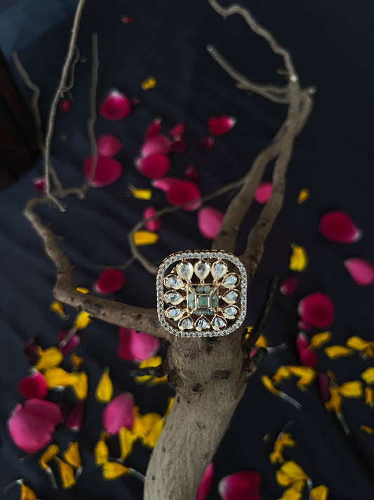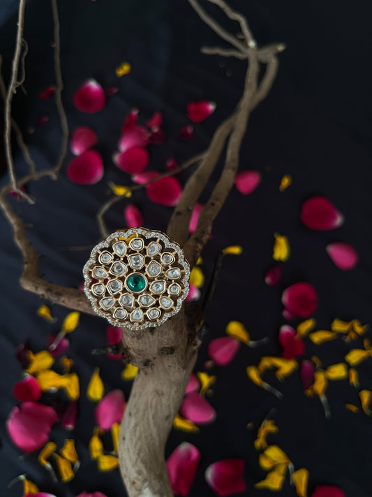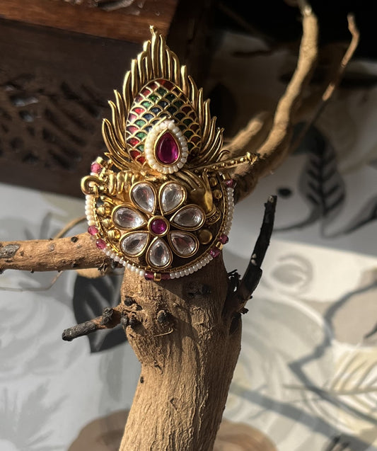 Morpankhi pattern Rajwadi pacchi kundan ring