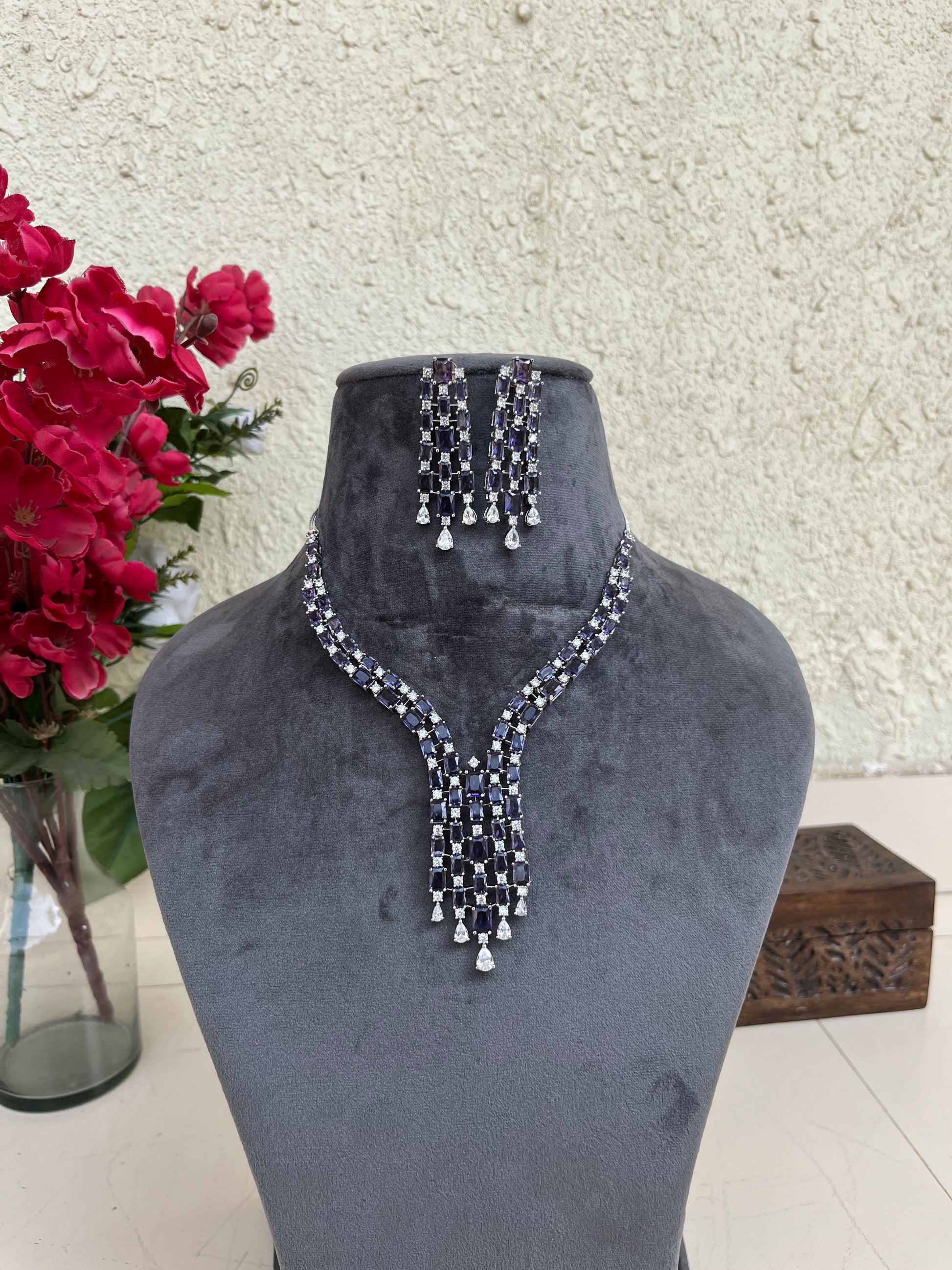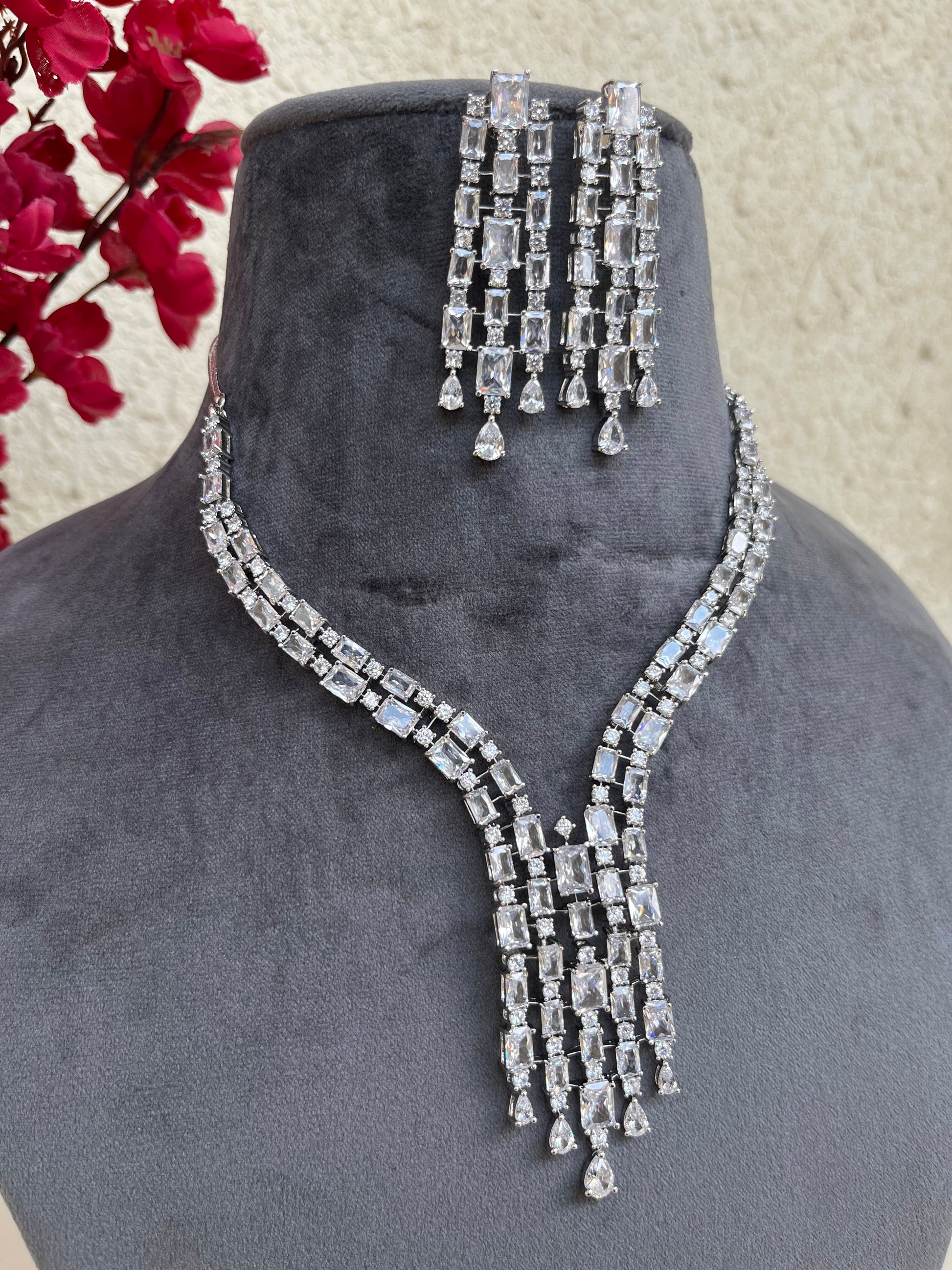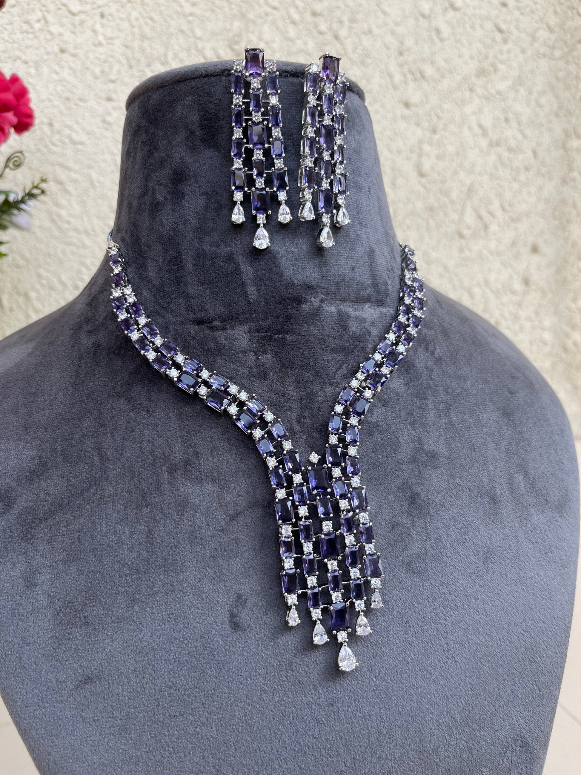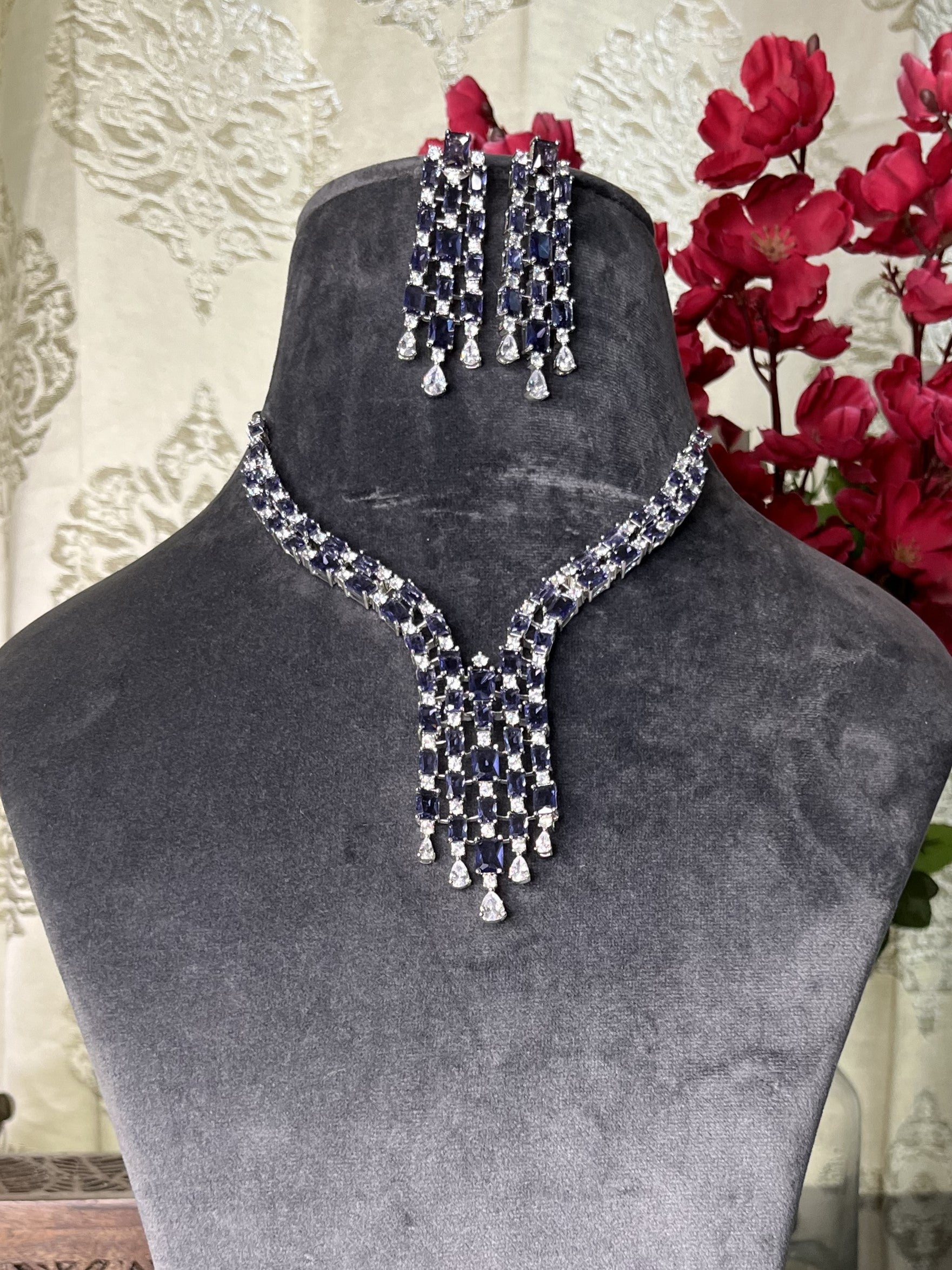 Product description : Western style American diamond set studded with doublet stones.