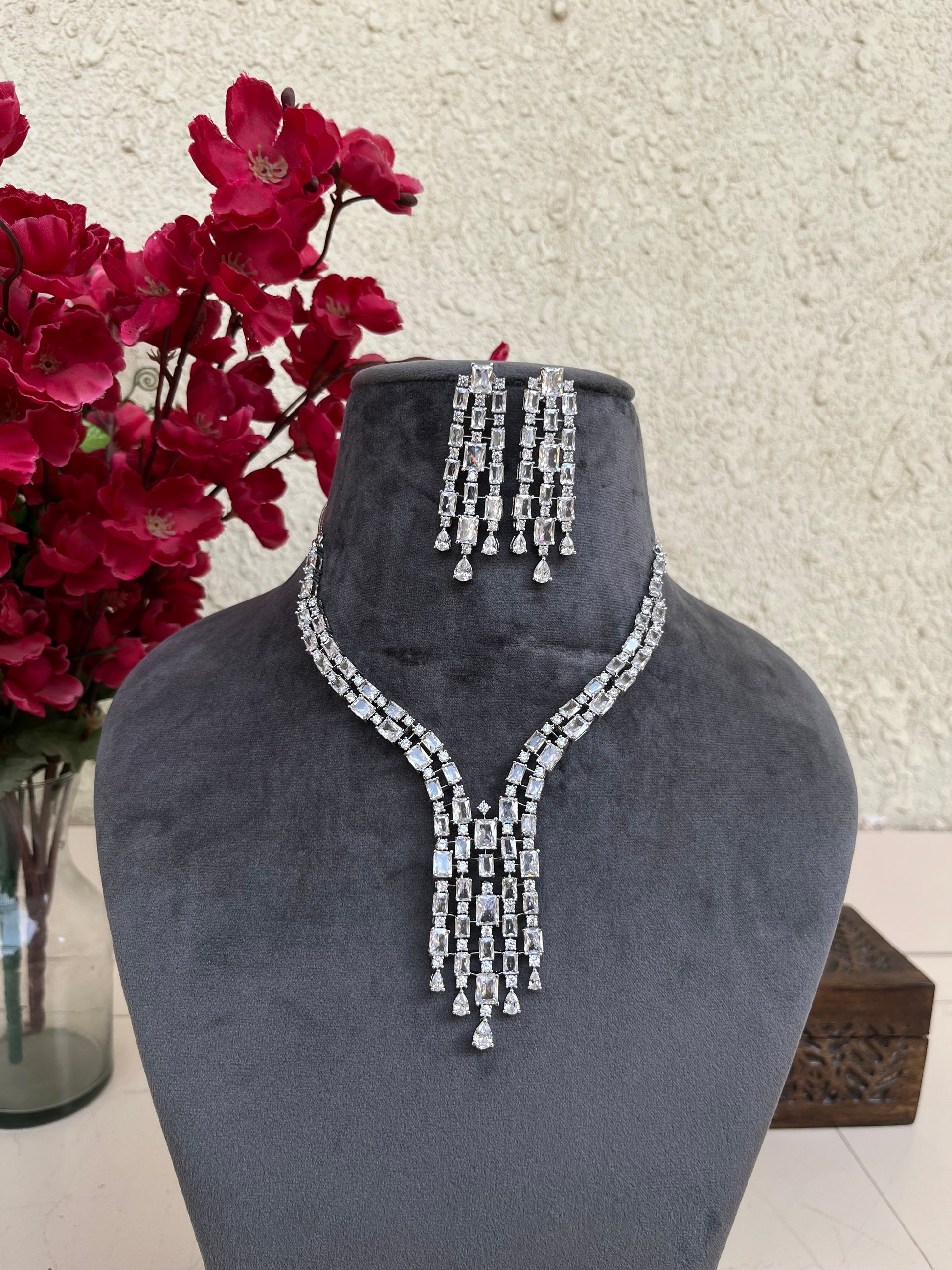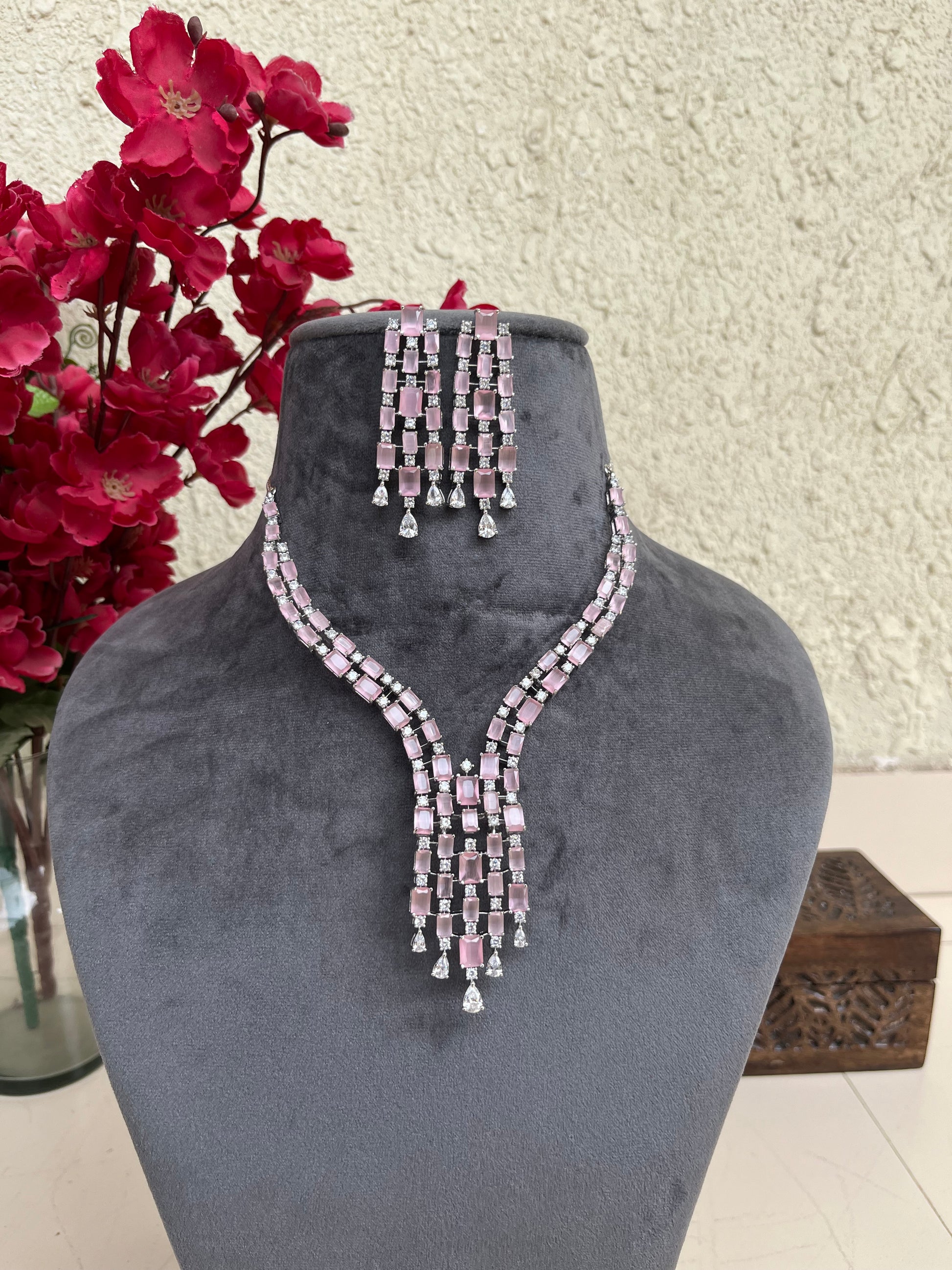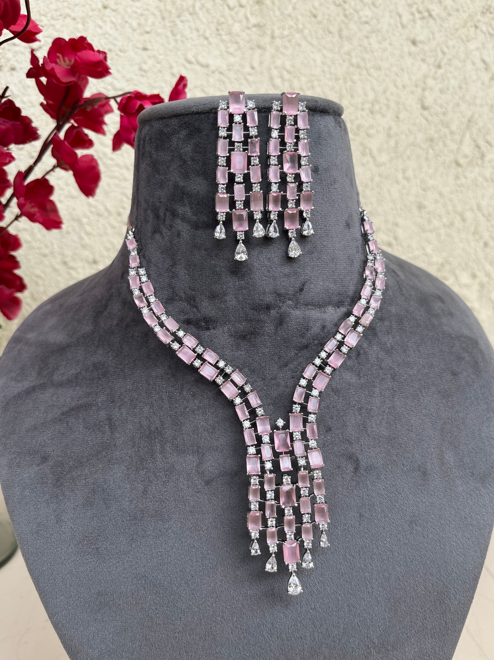 Product description : Western style American diamond set studded with doublet stones.