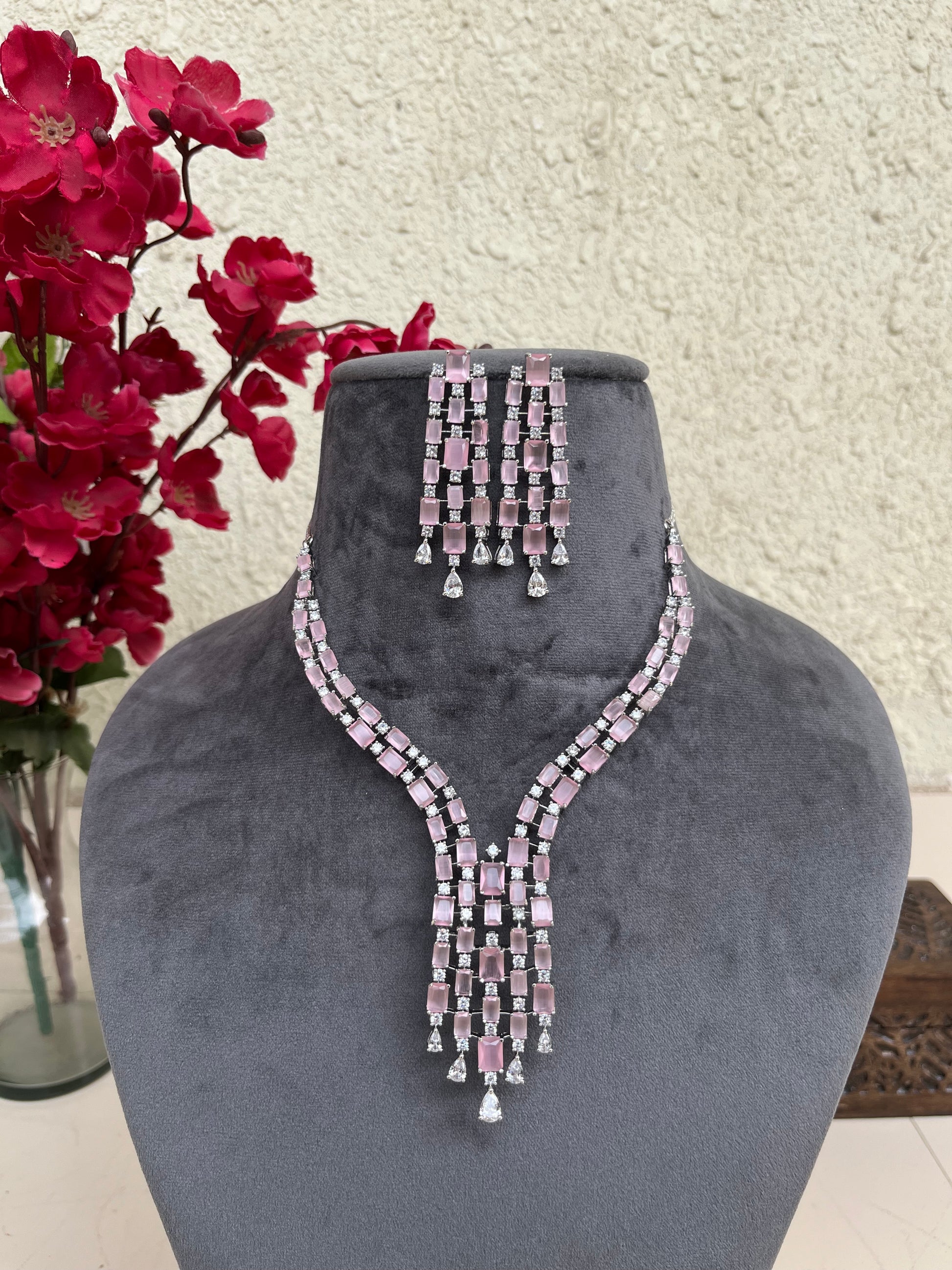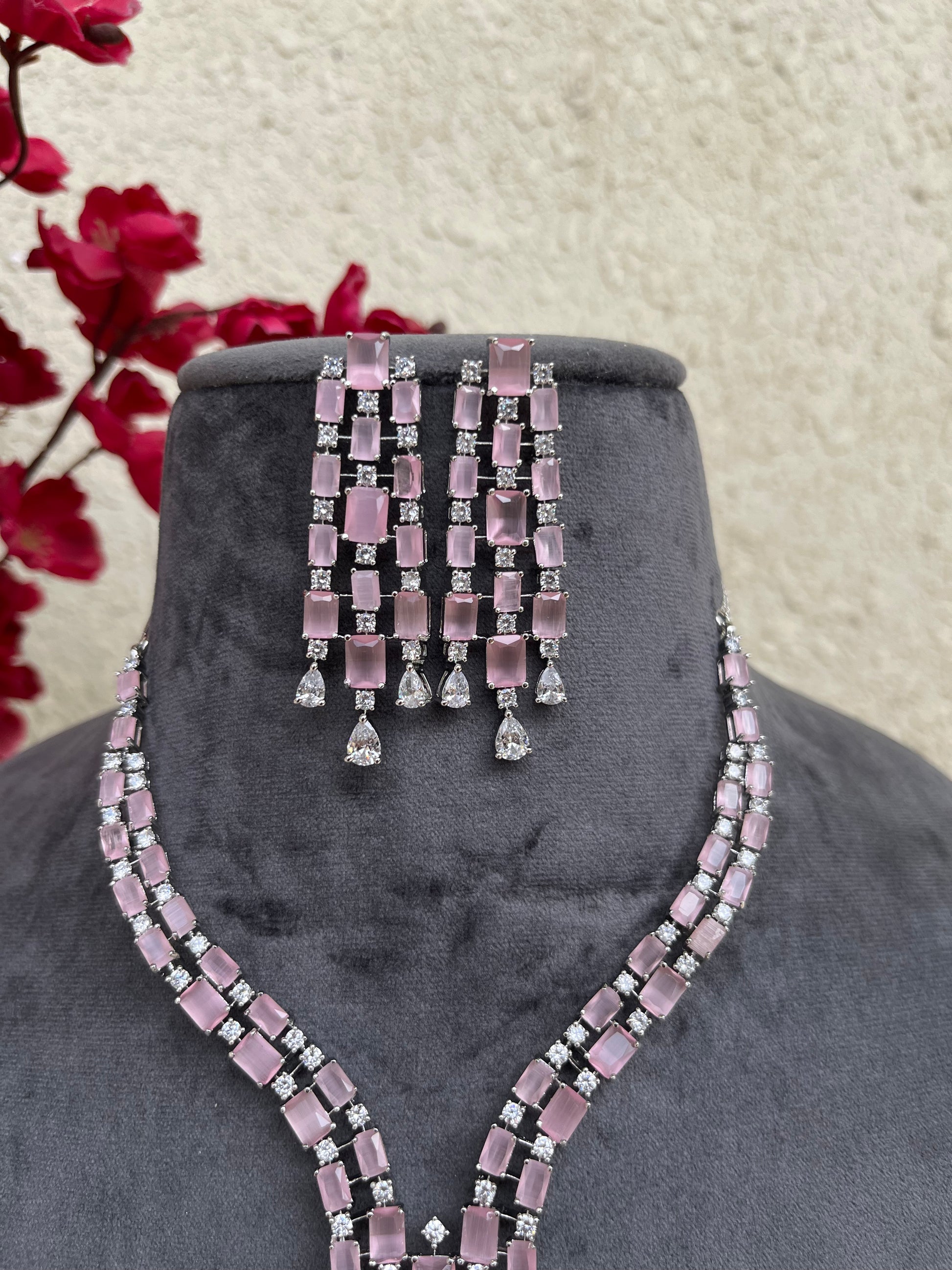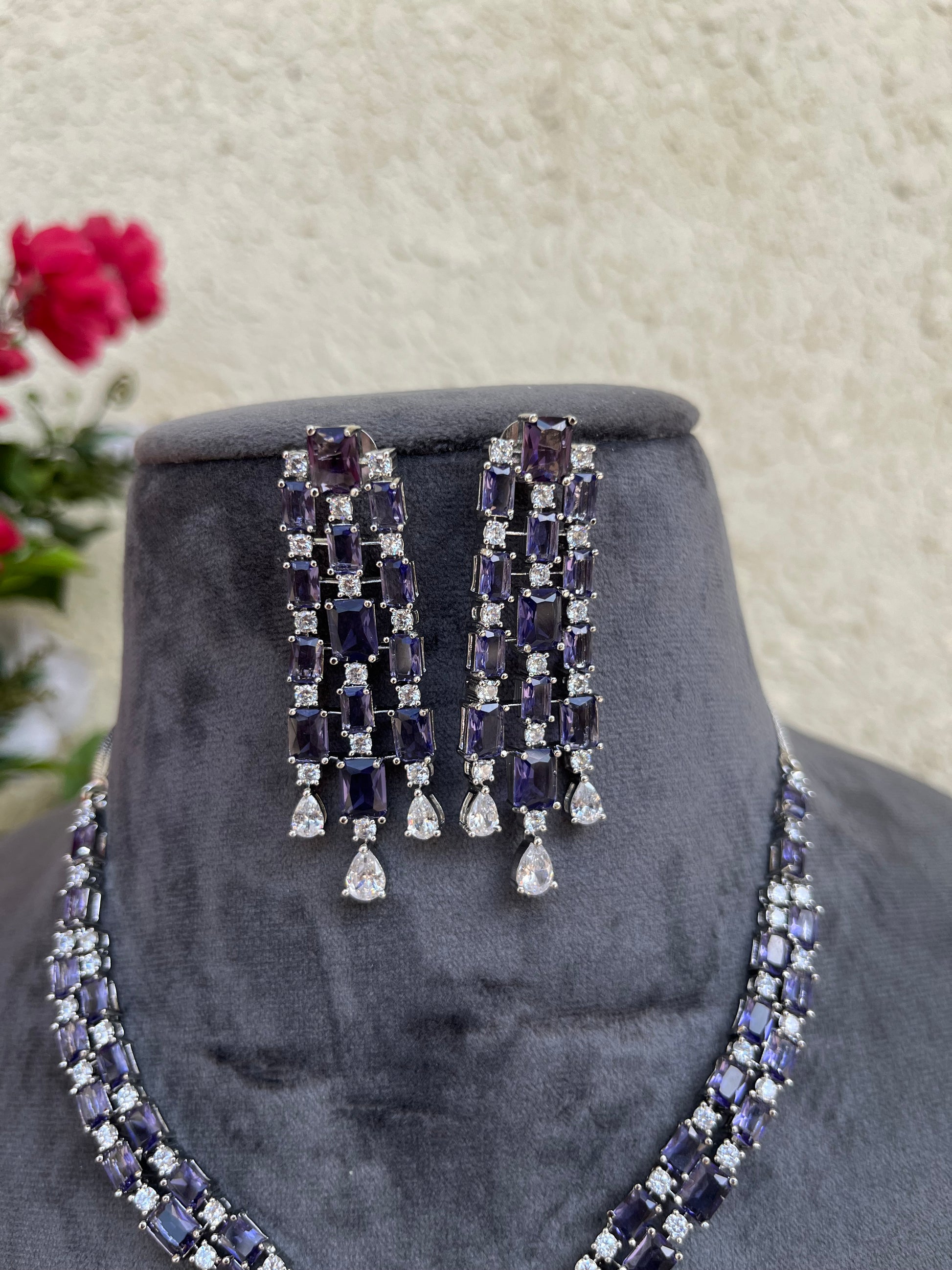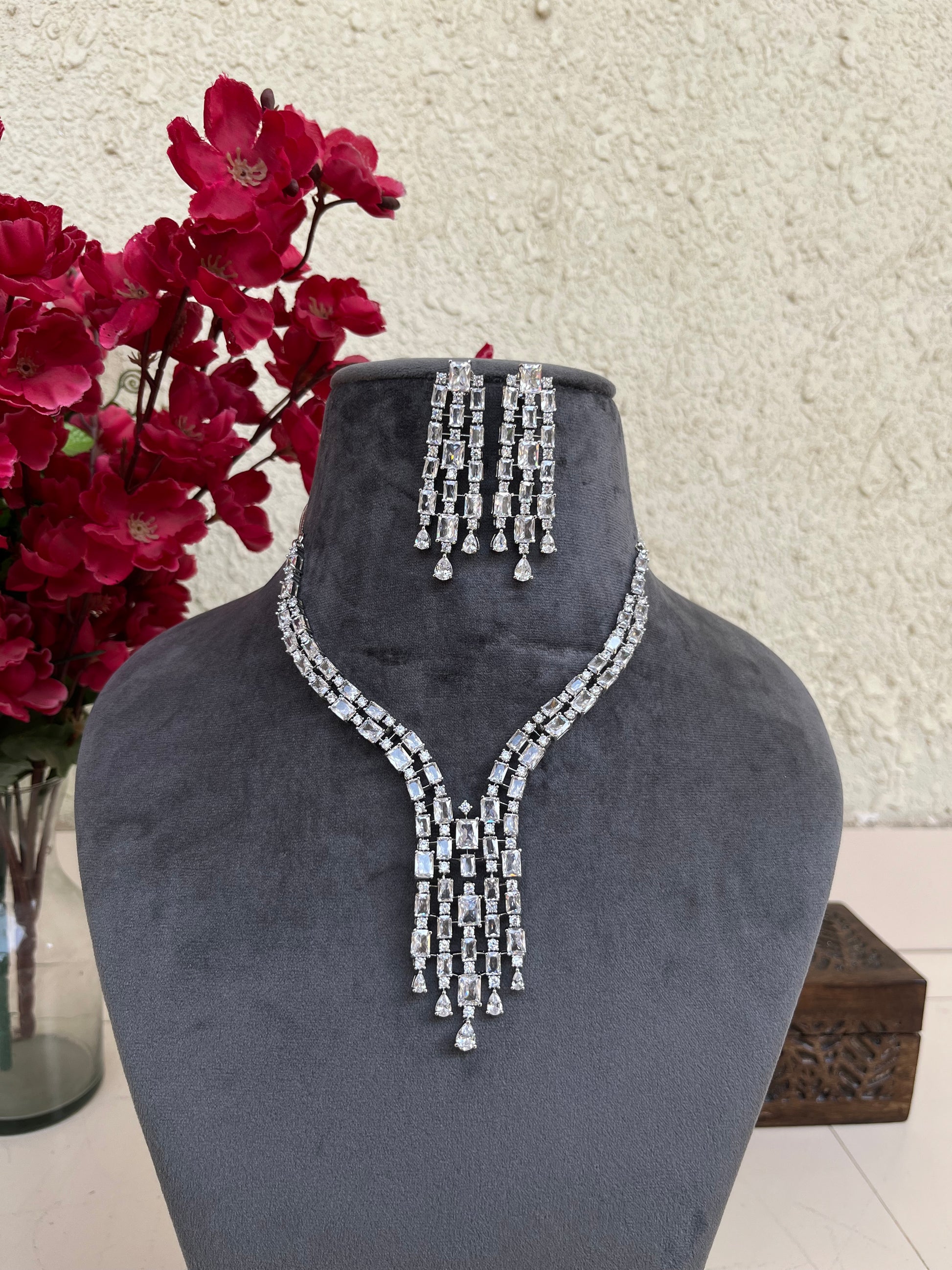 Product description : Western style American diamond set studded with doublet stones.