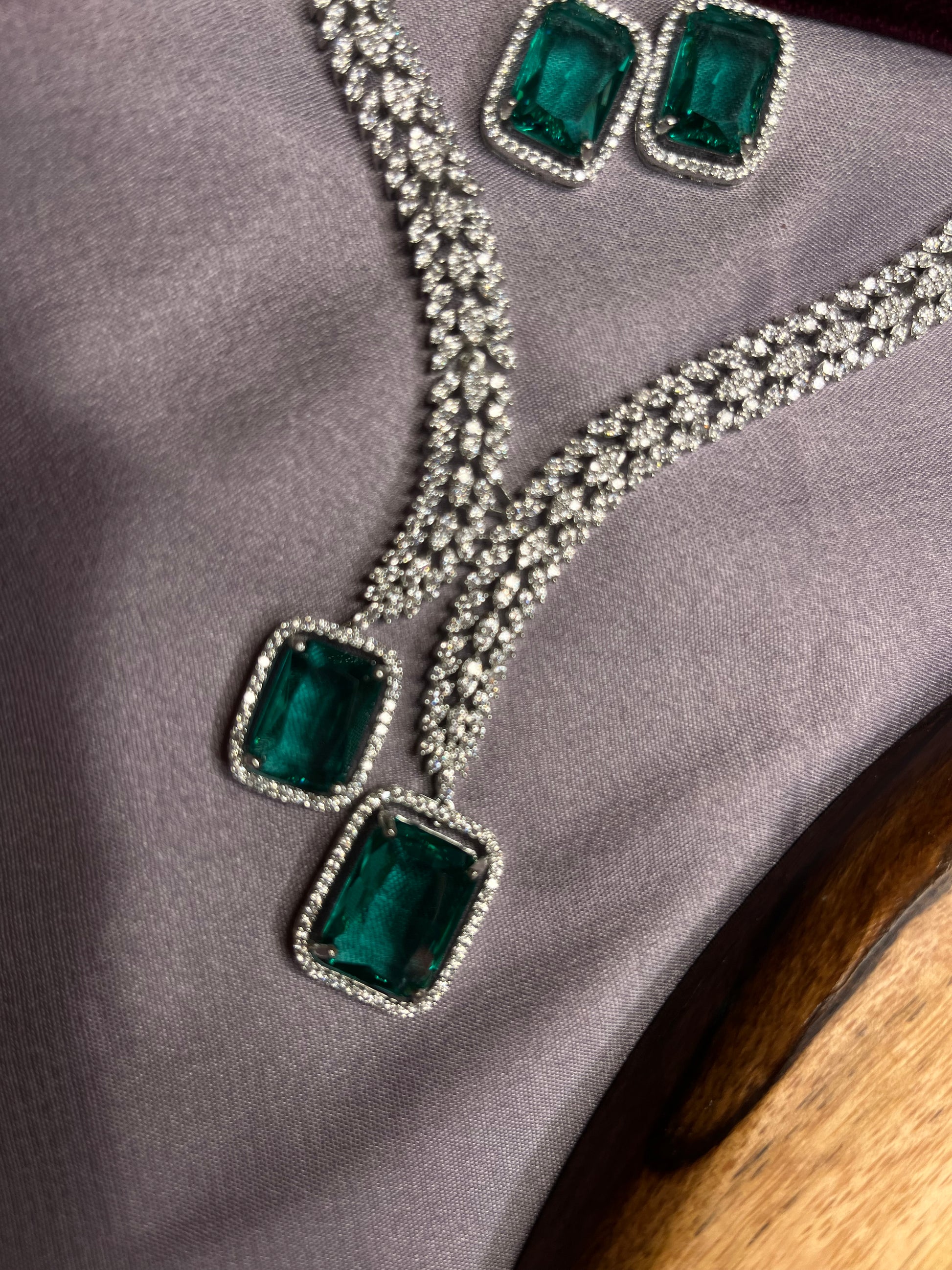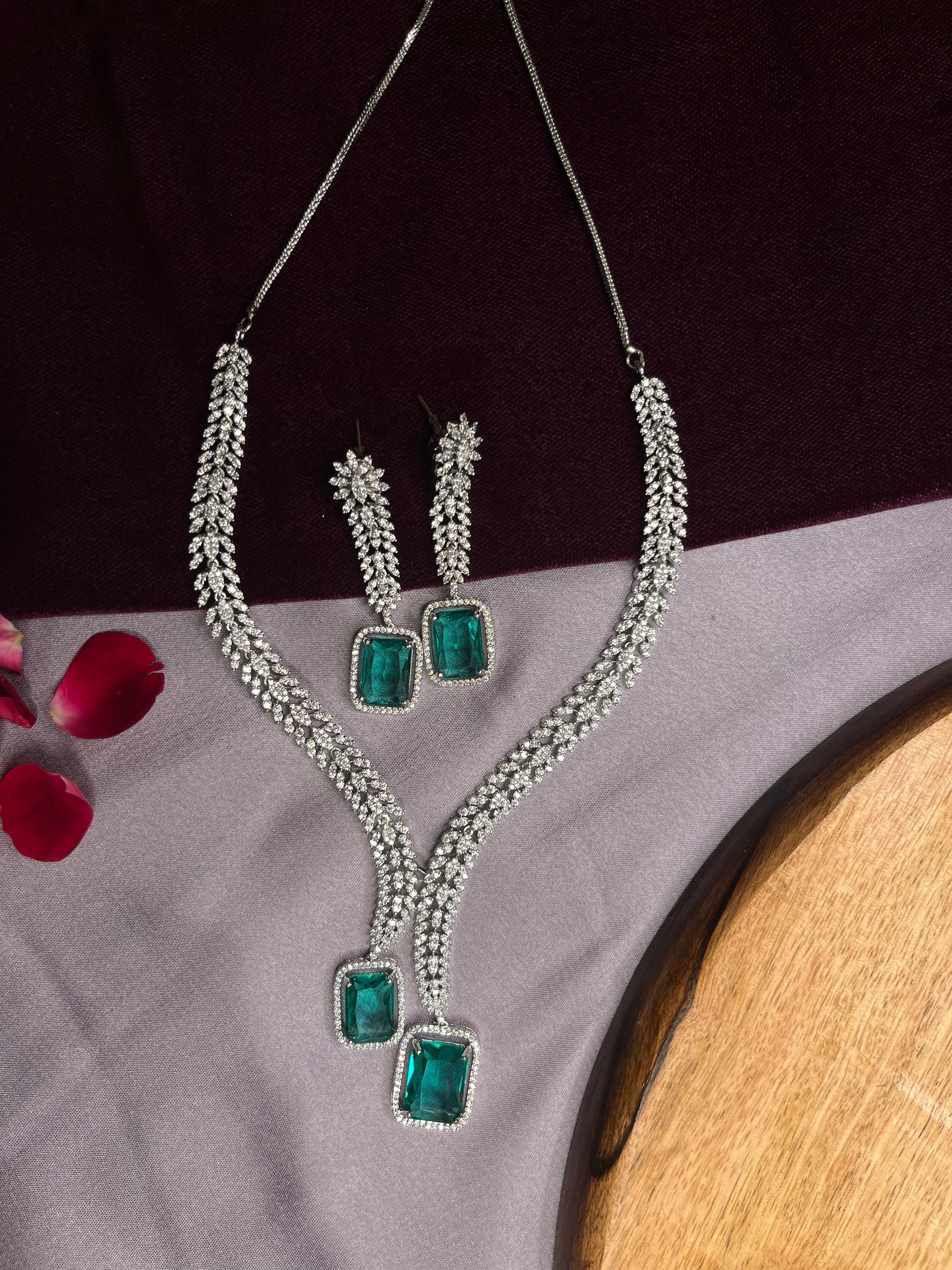 Product description : Finest quality American diamonds with swarwoski stone pendant and danglers.