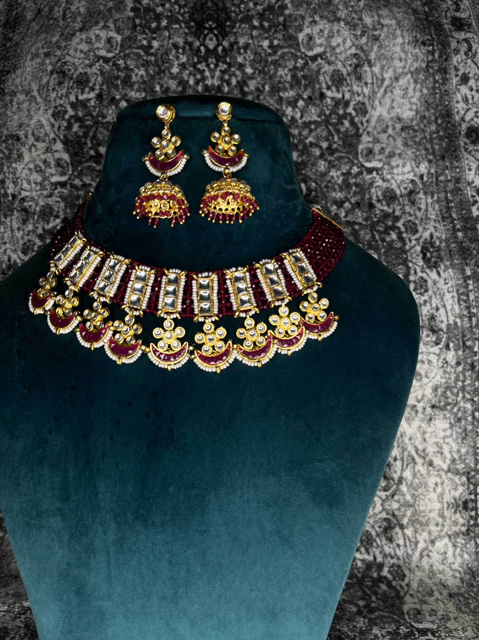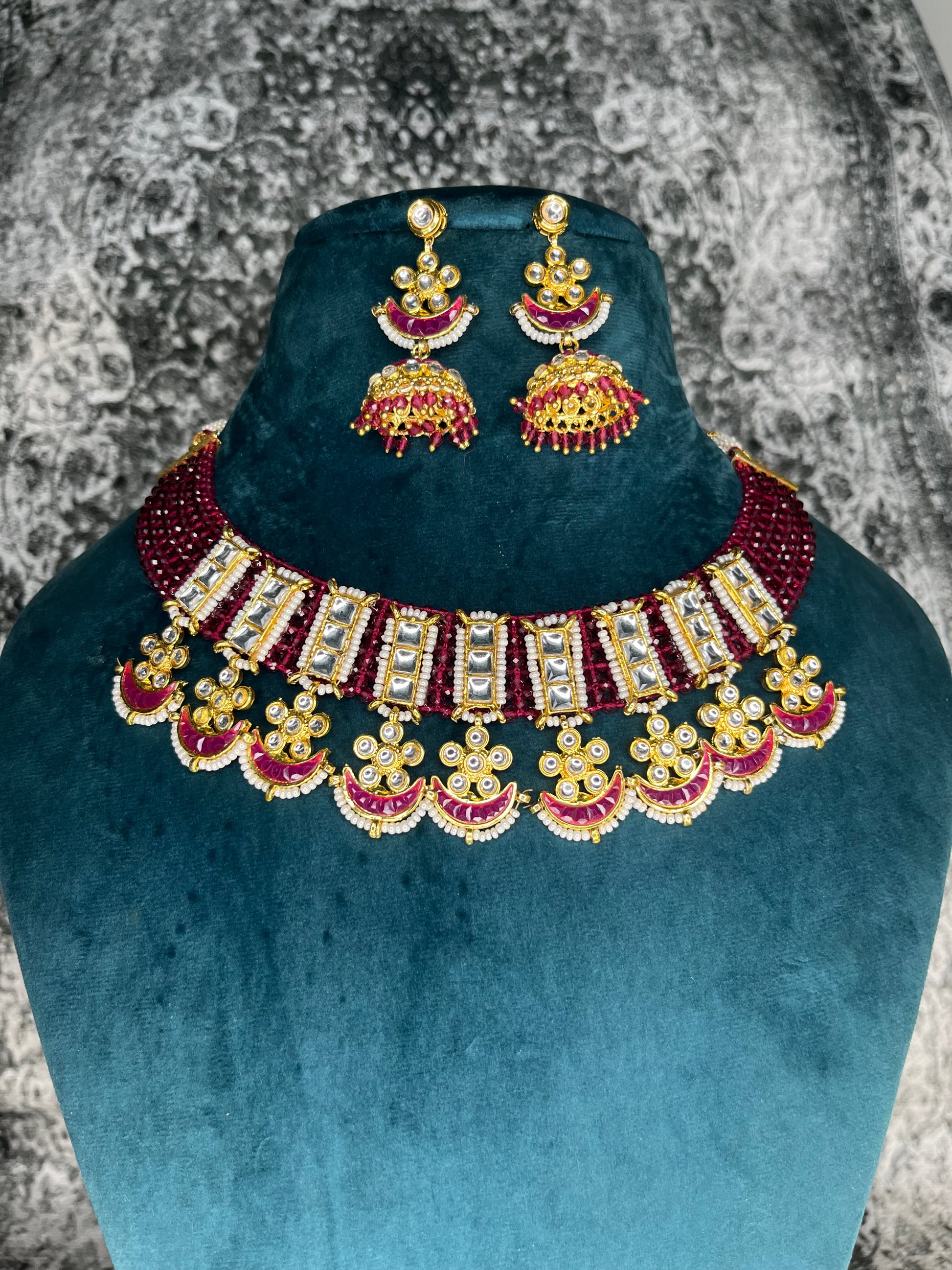Product description : Light weight and elegant gujarati kundan choker with hydro bead piroi.