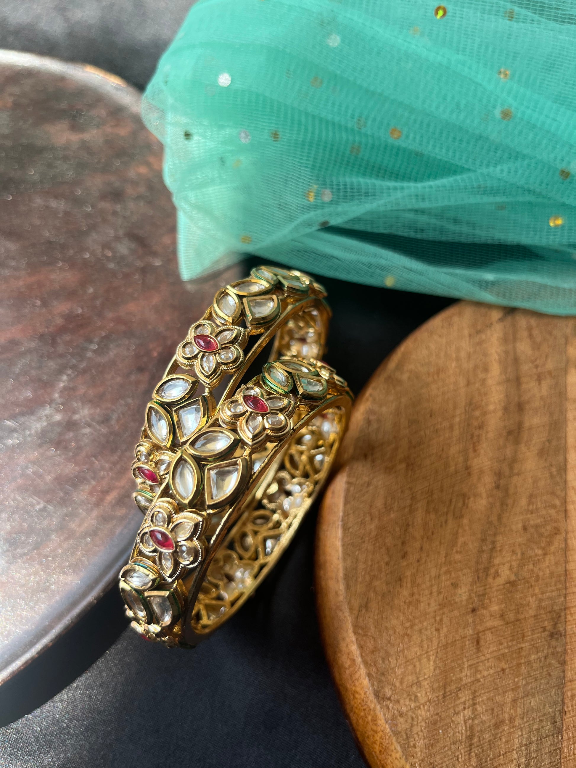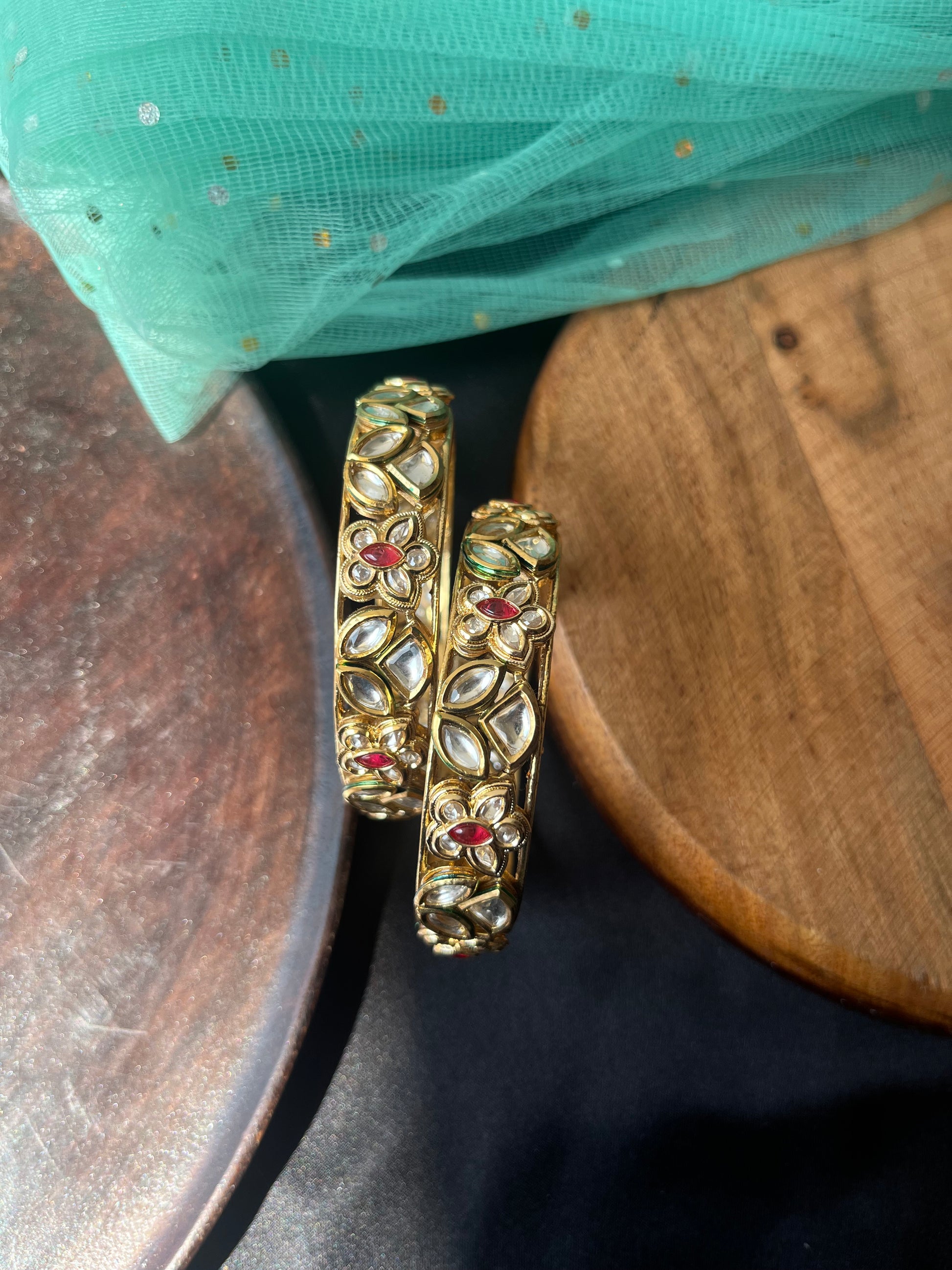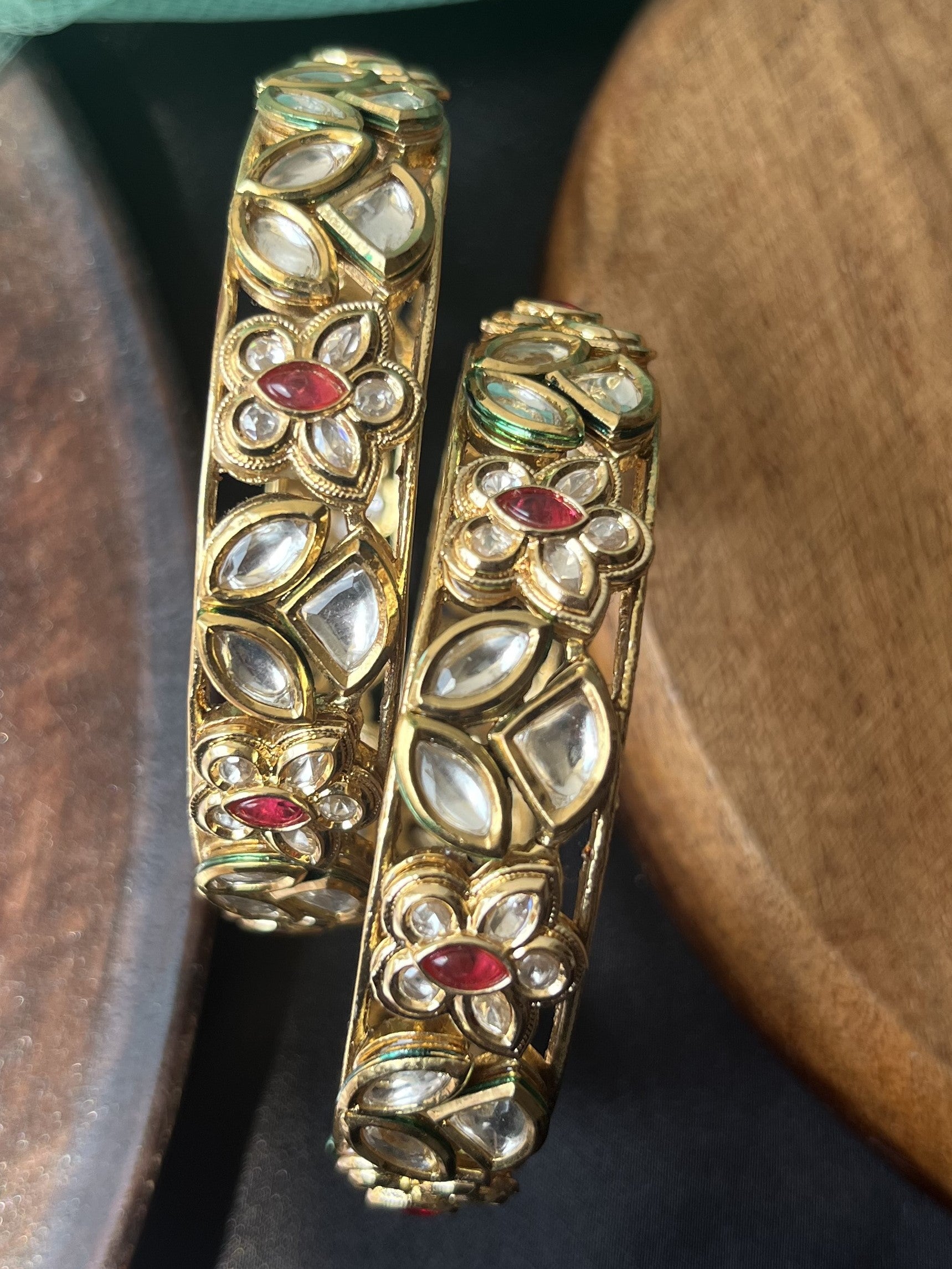 Product description : Floral inspired designed kundan kada with multicoloured kundans