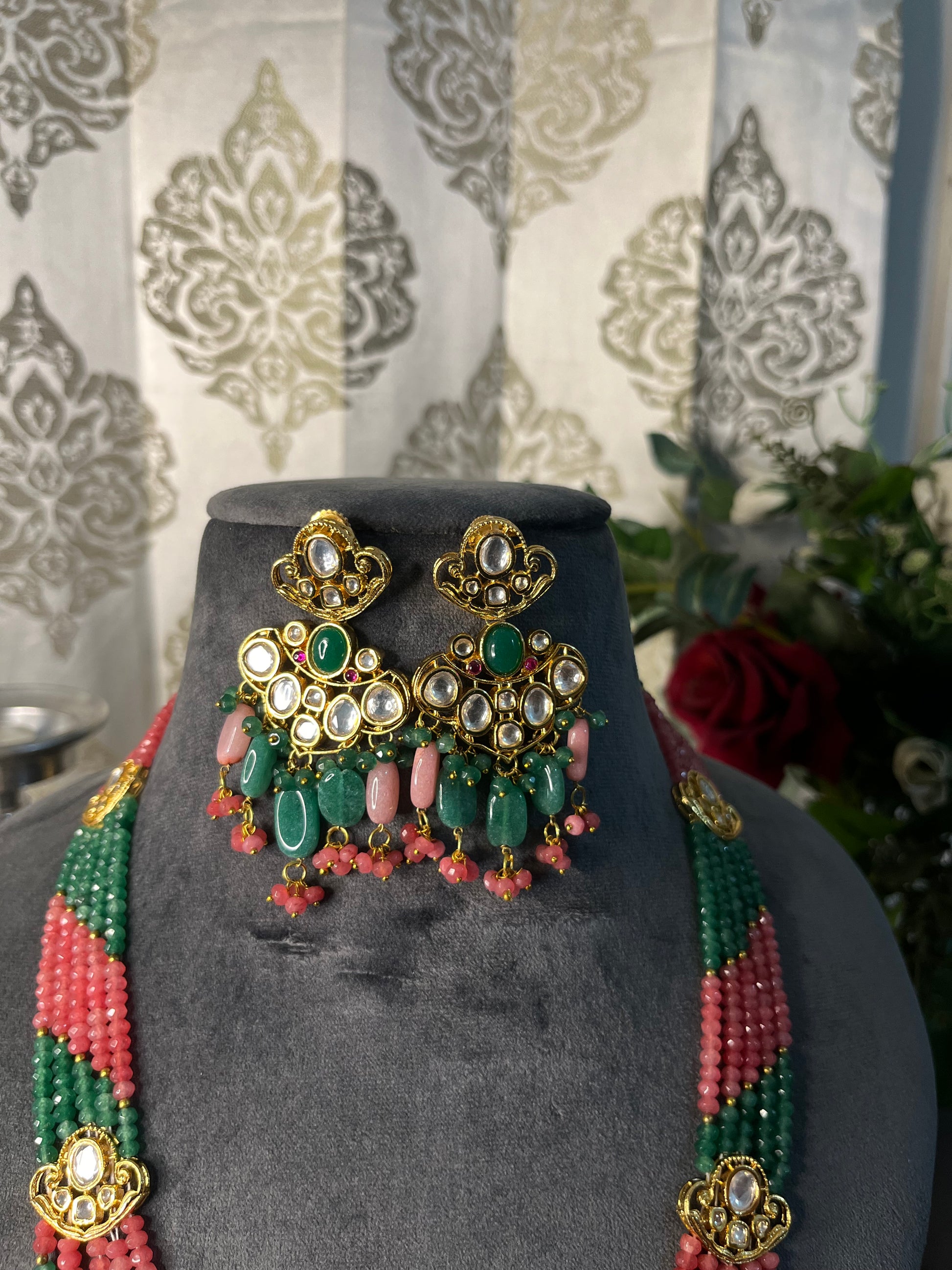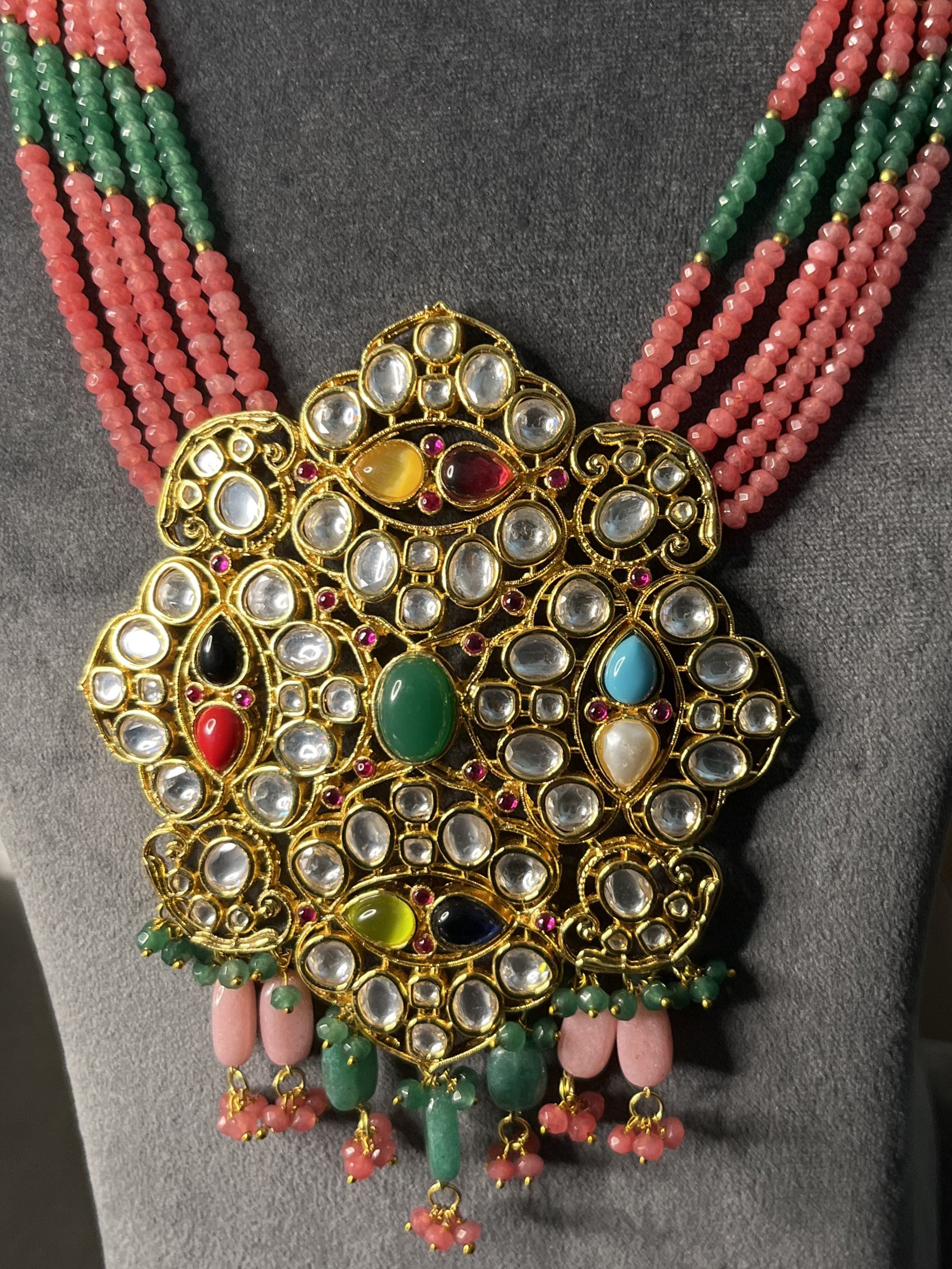 Product description : Premium quality pachi kundan rani haar with semi precious beads piroi and Multi coloured stones.