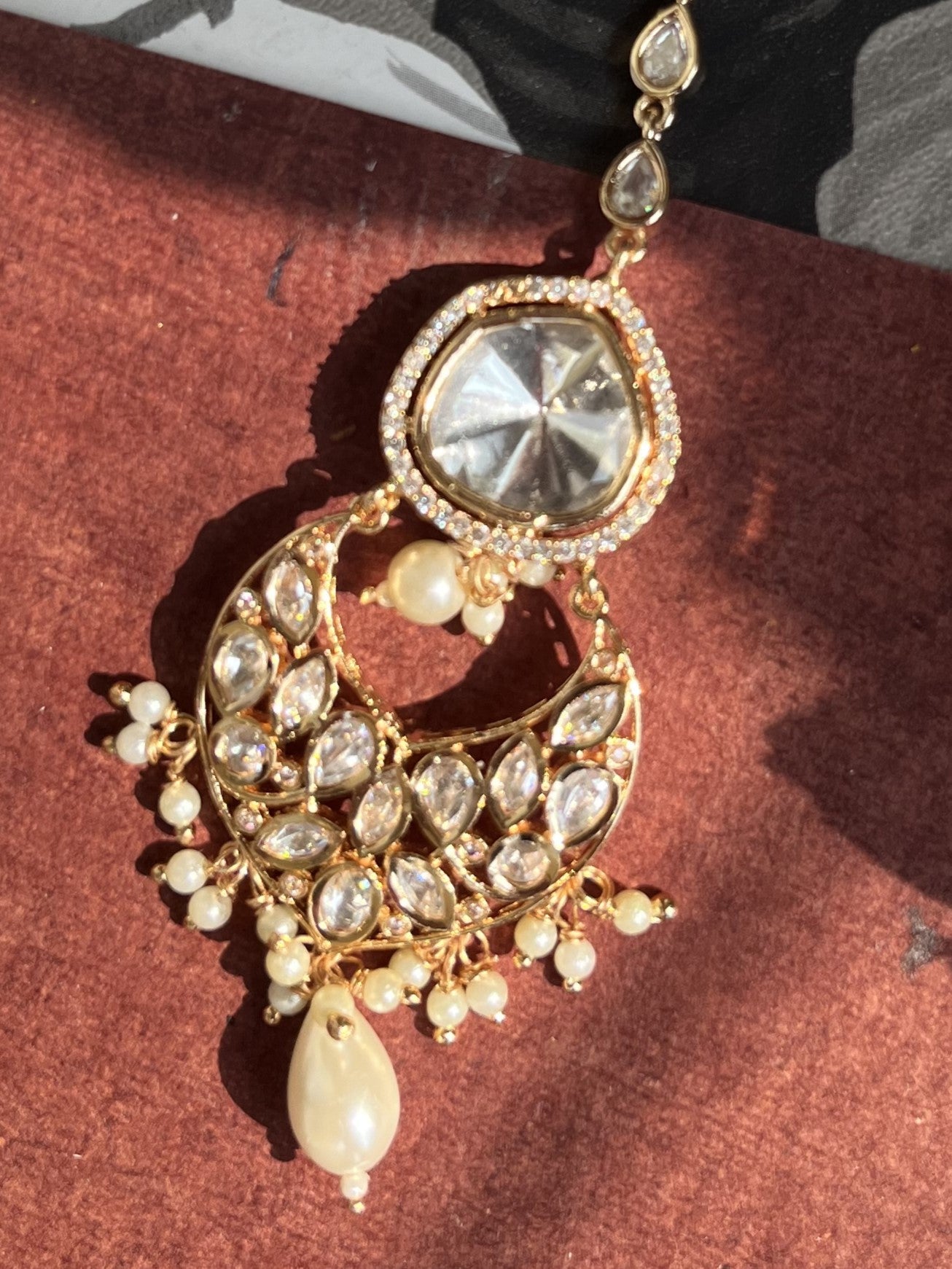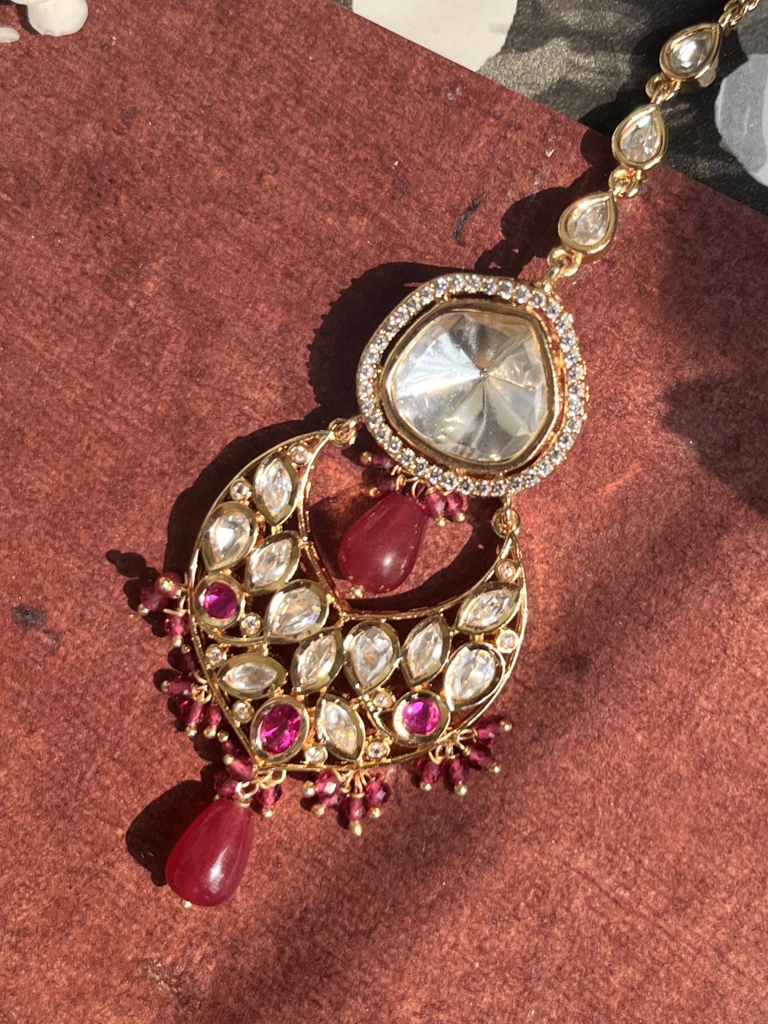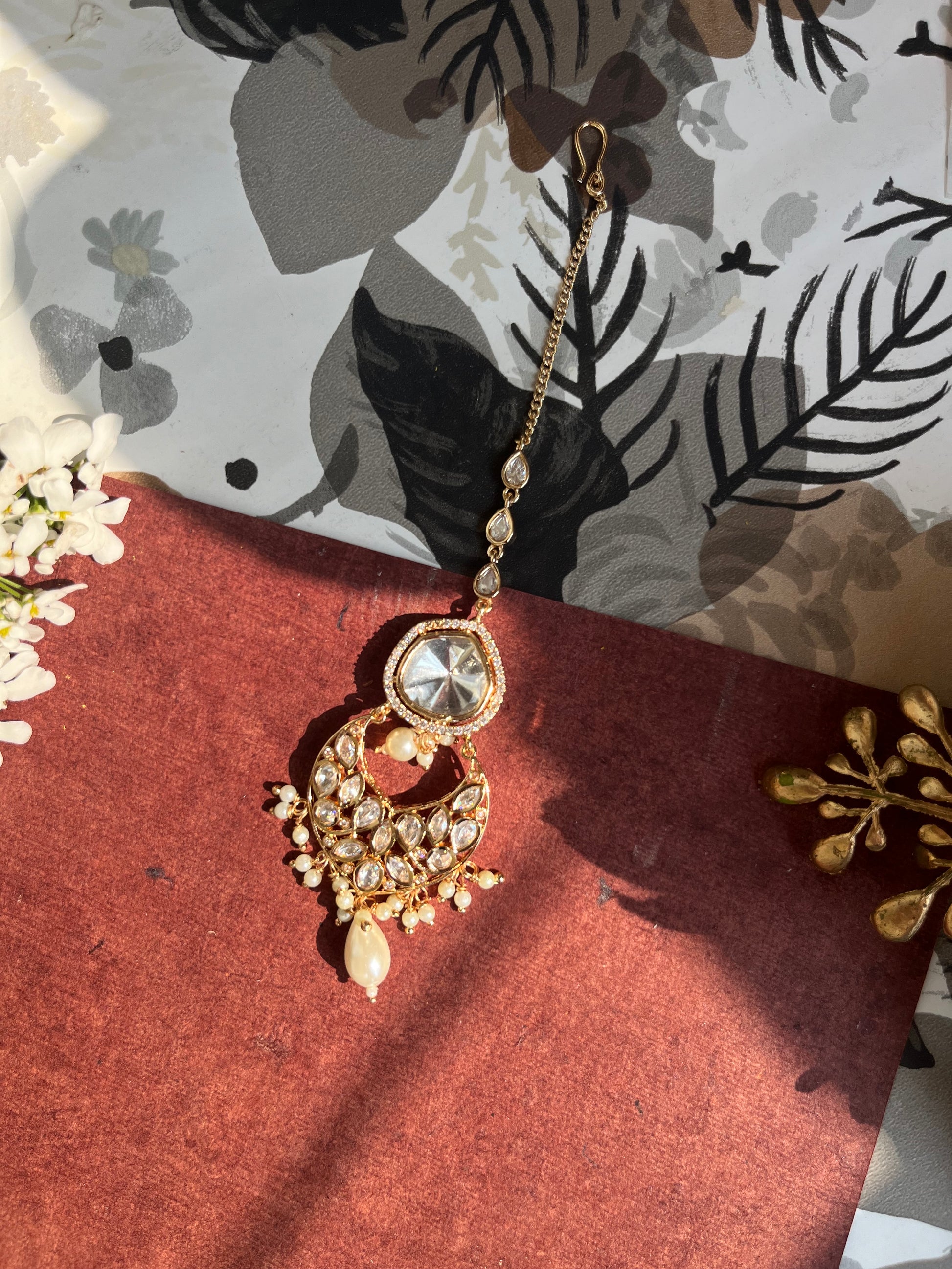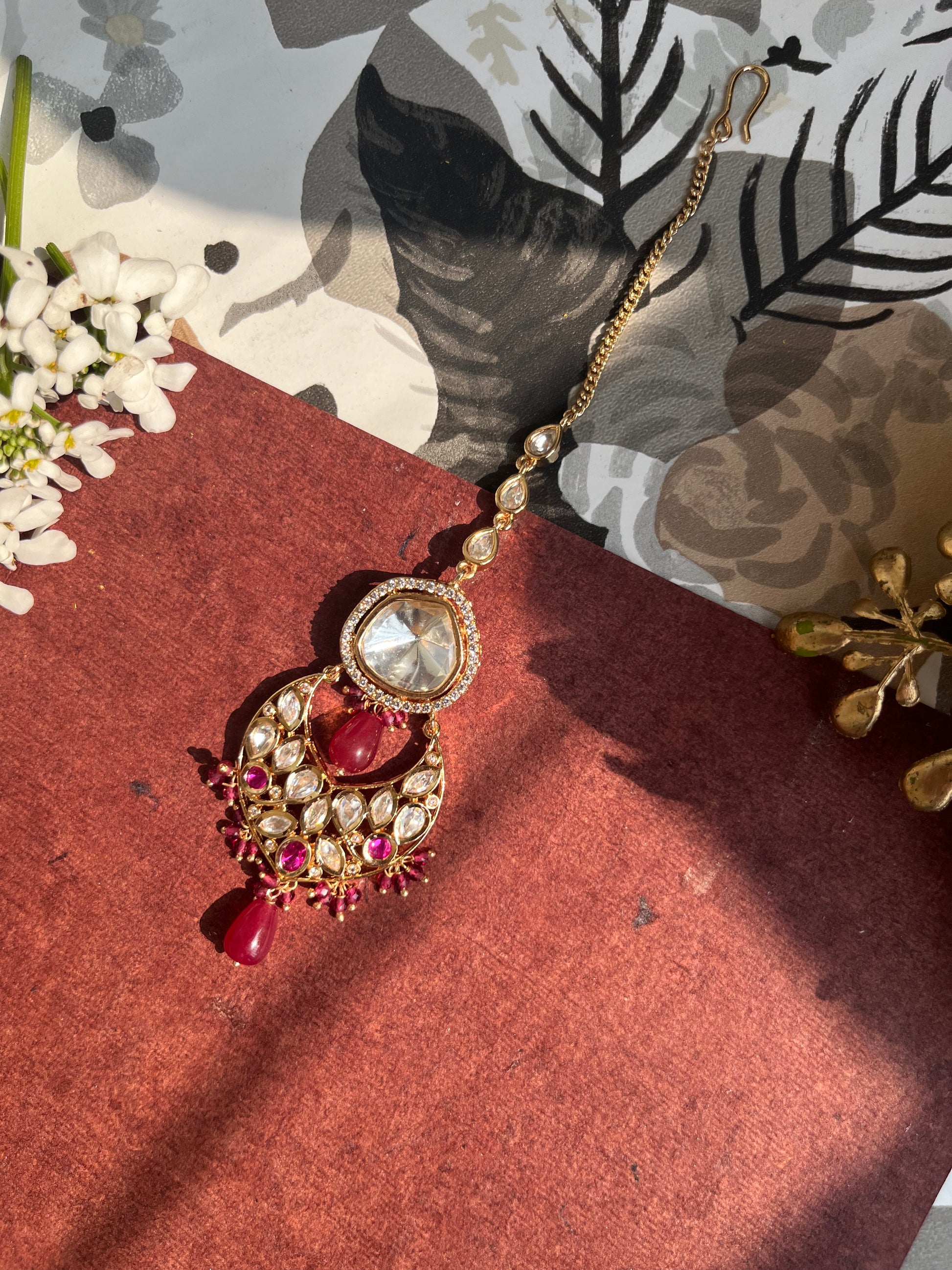 Product description : Mang tika designed in Real parab kundan with silver foiling and mona lisa stones bandhai.