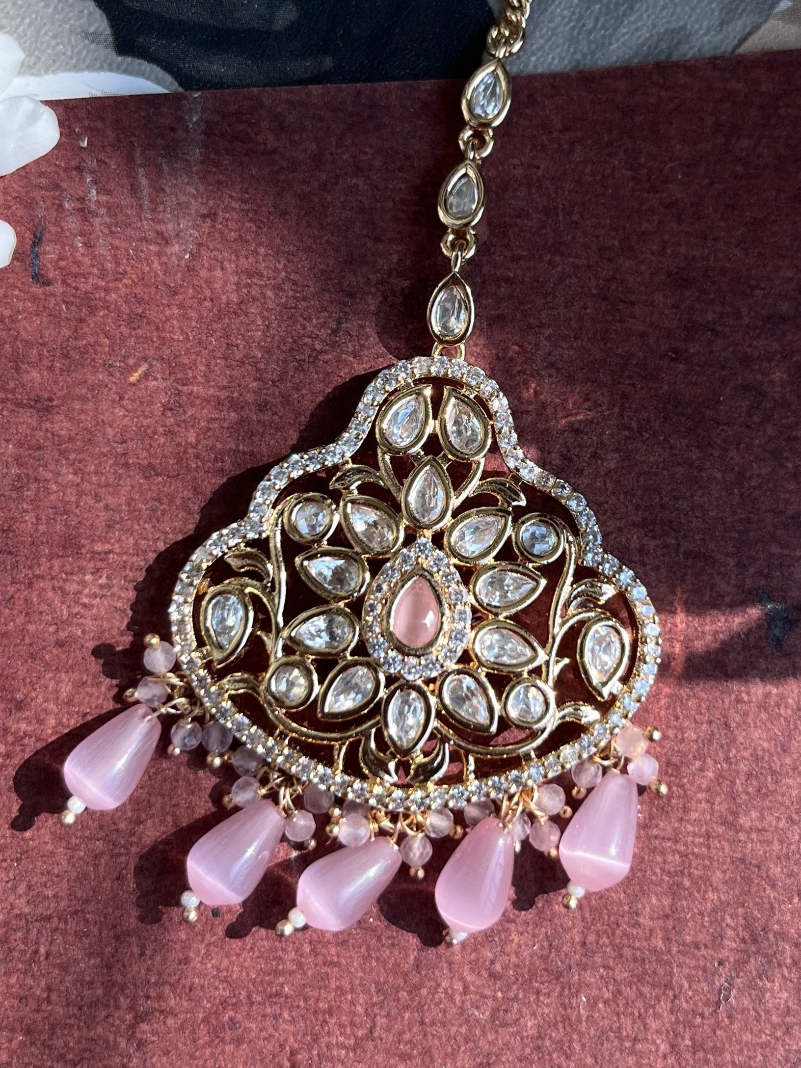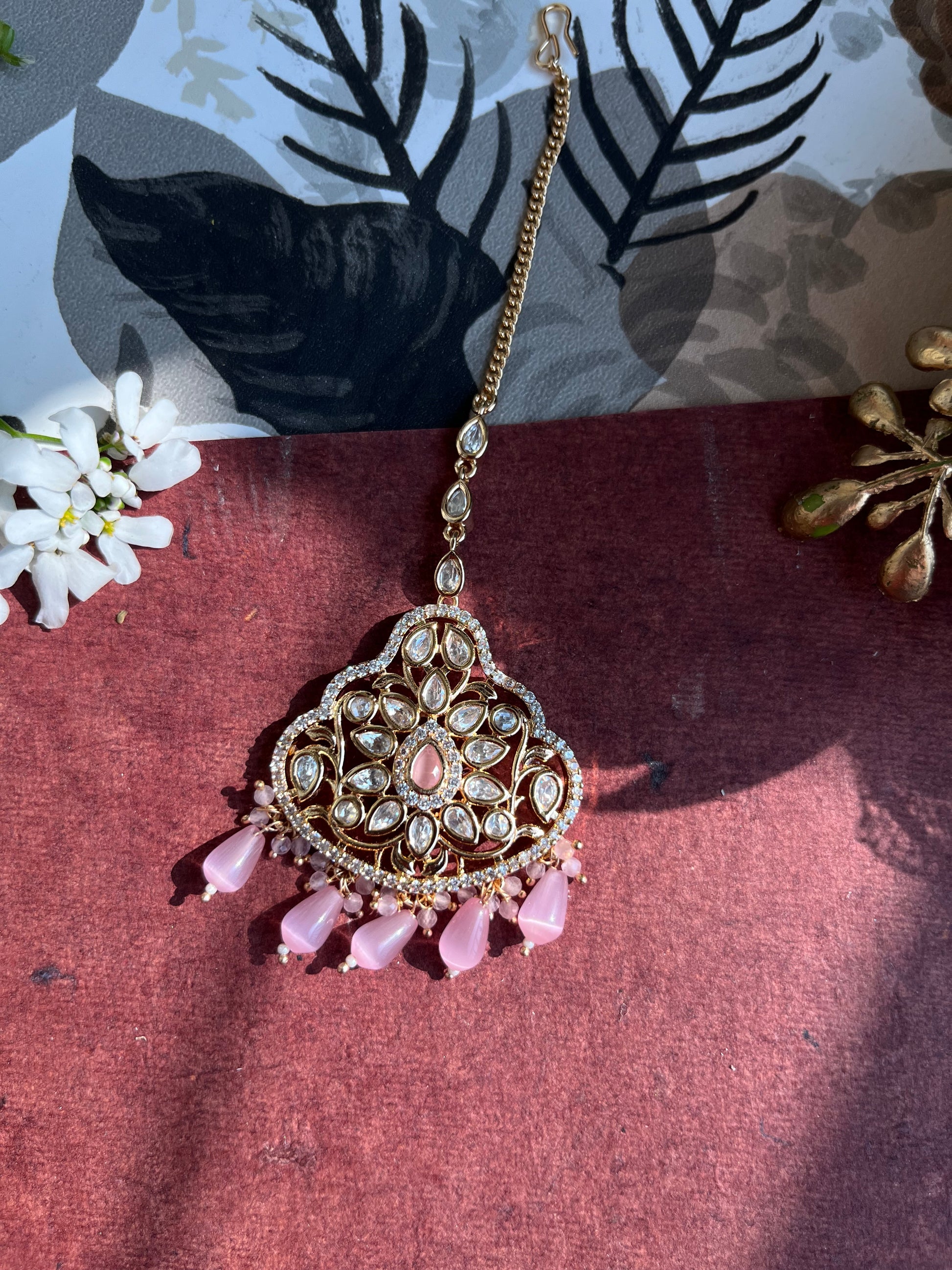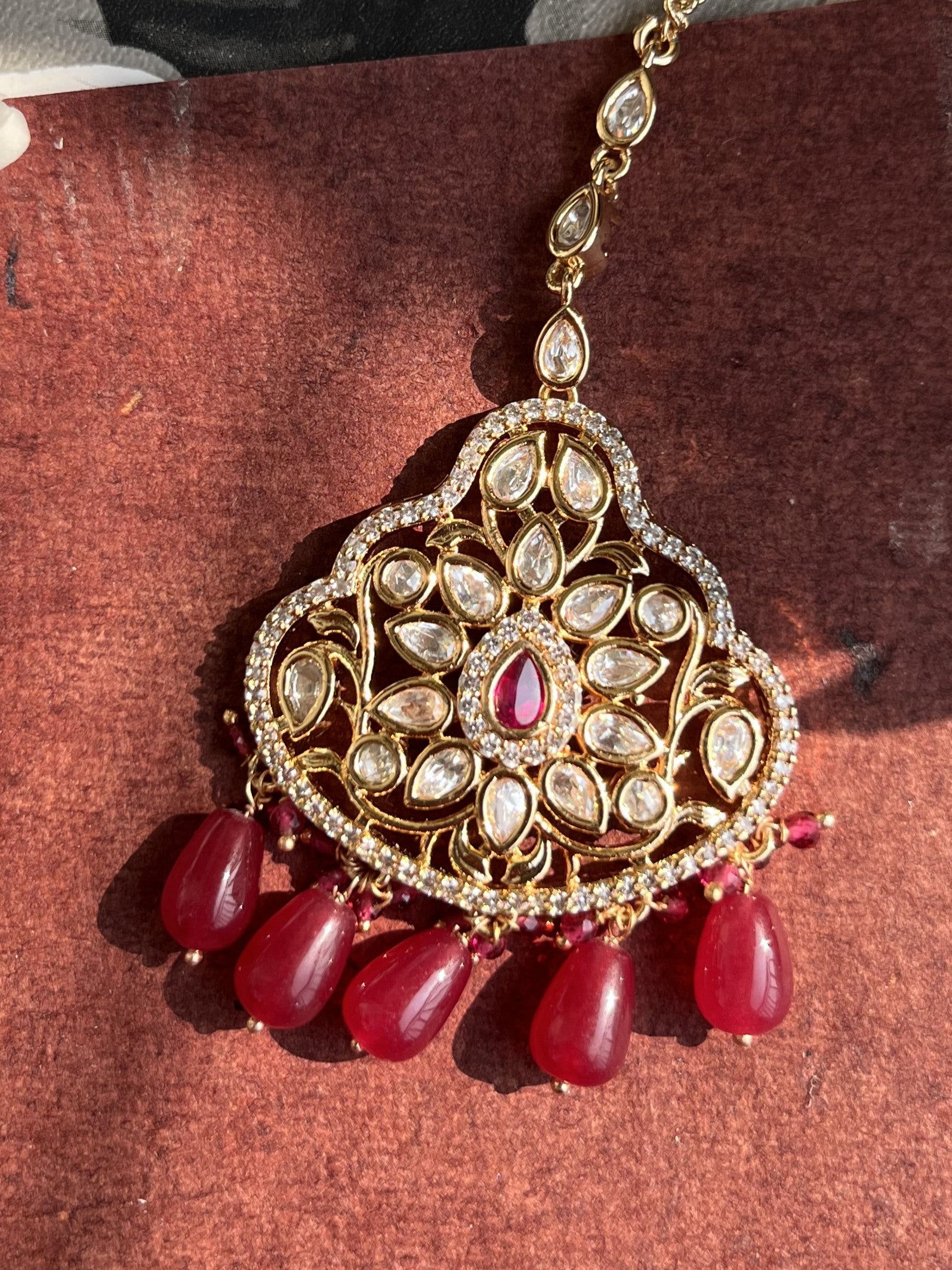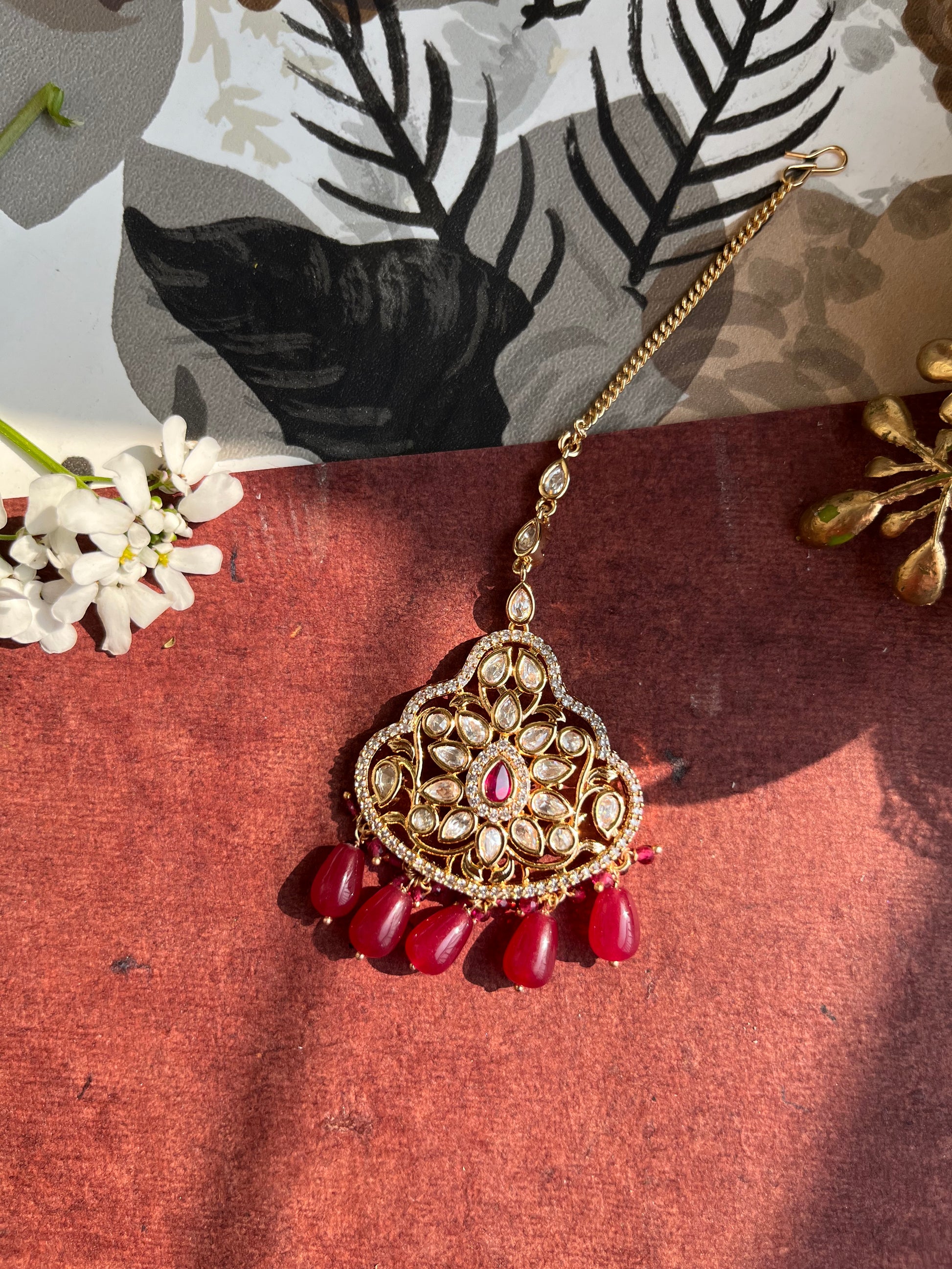 Product description : Mang tika designed in Real parab kundan with silver foiling and mona lisa stones bandhai.
