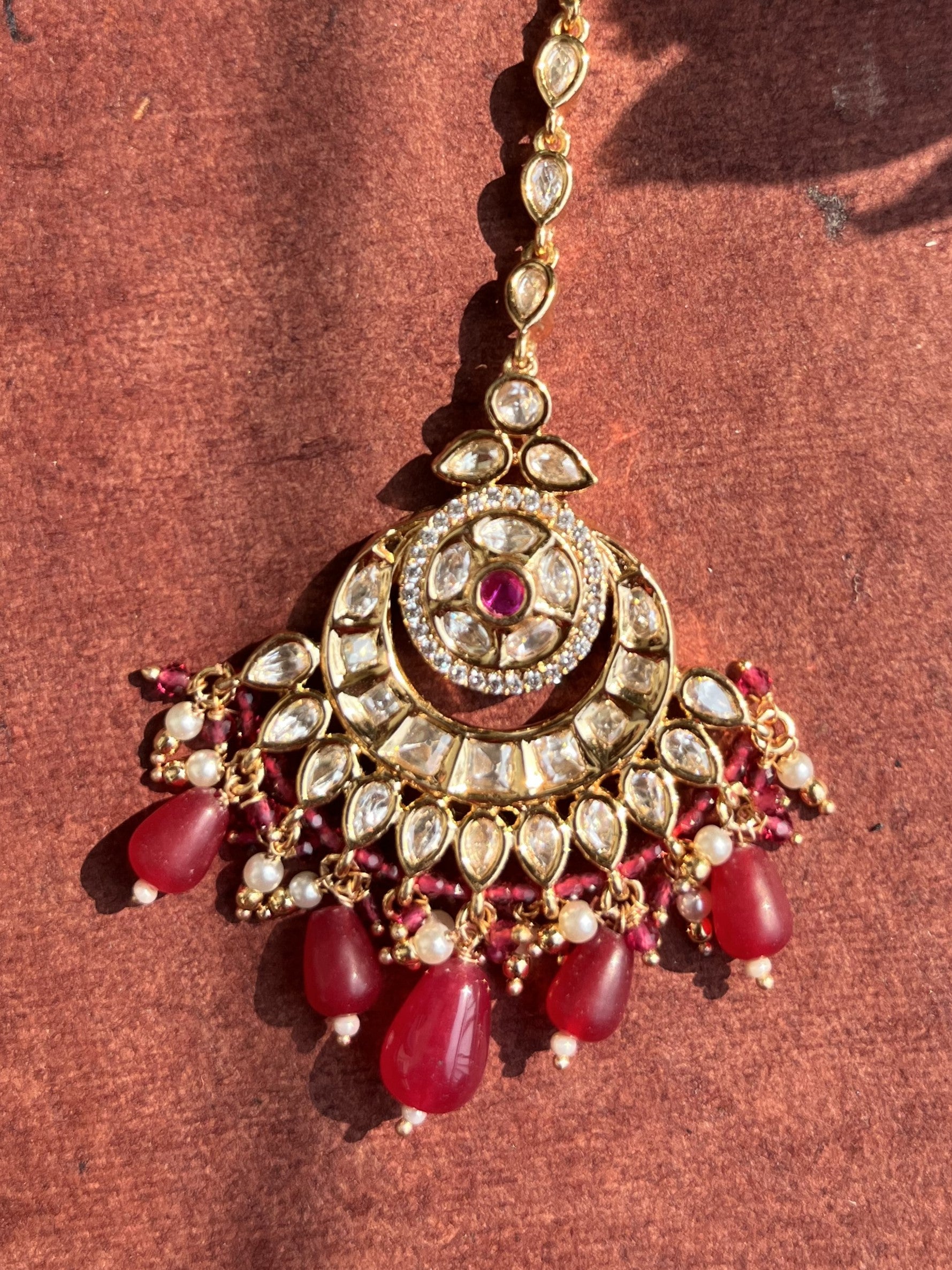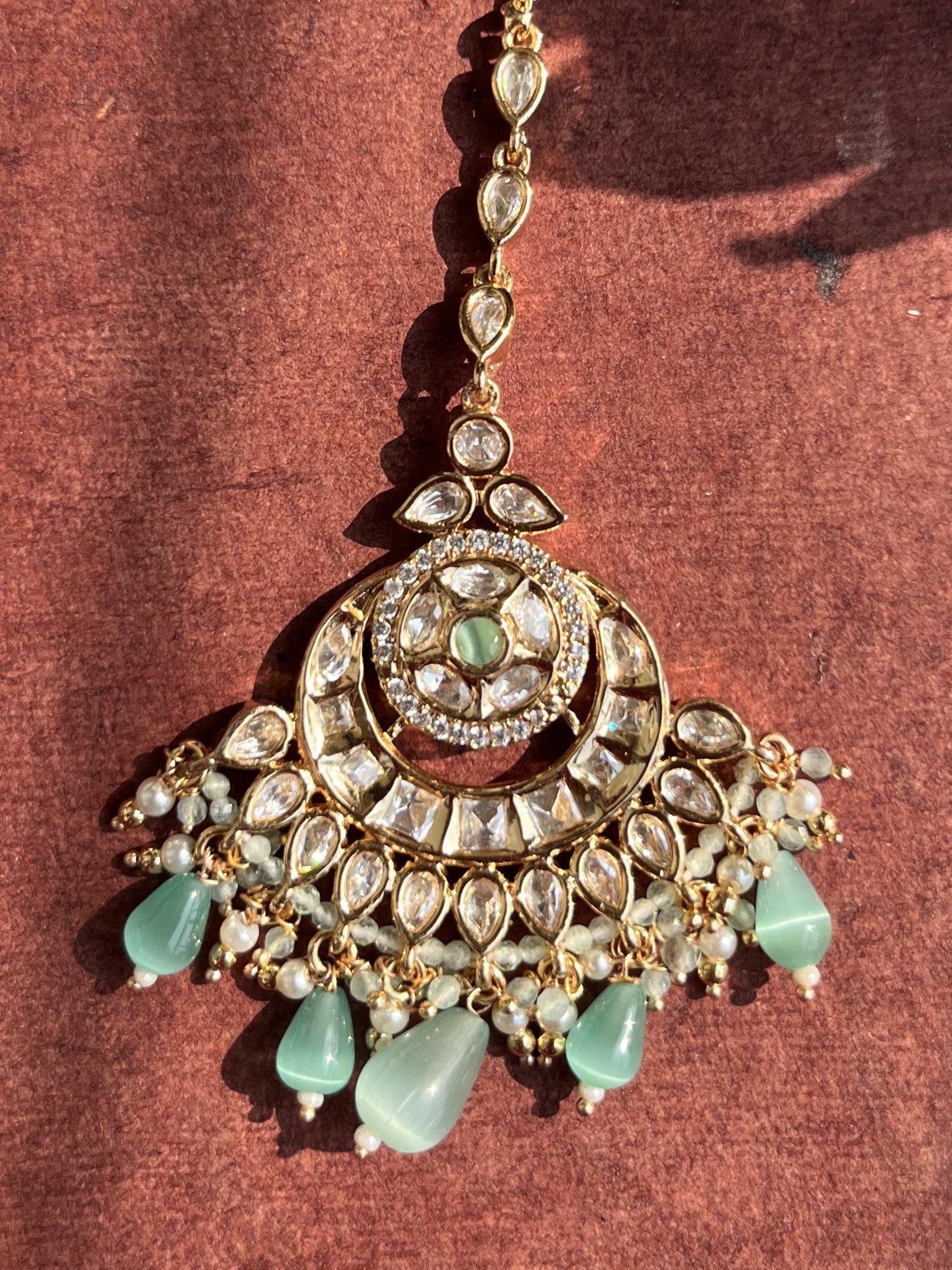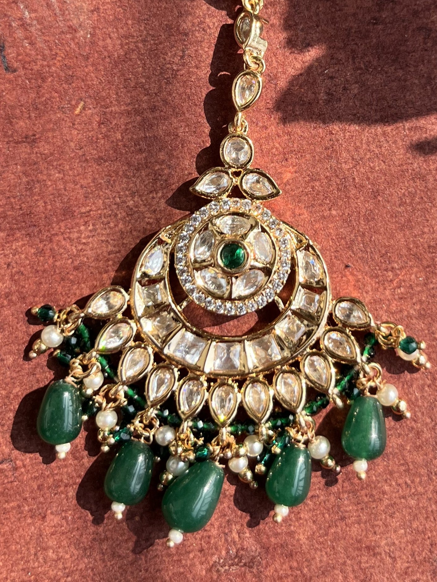Product description : Mang tika designed in Real parab kundan with silver foiling and mona lisa stones bandhai.