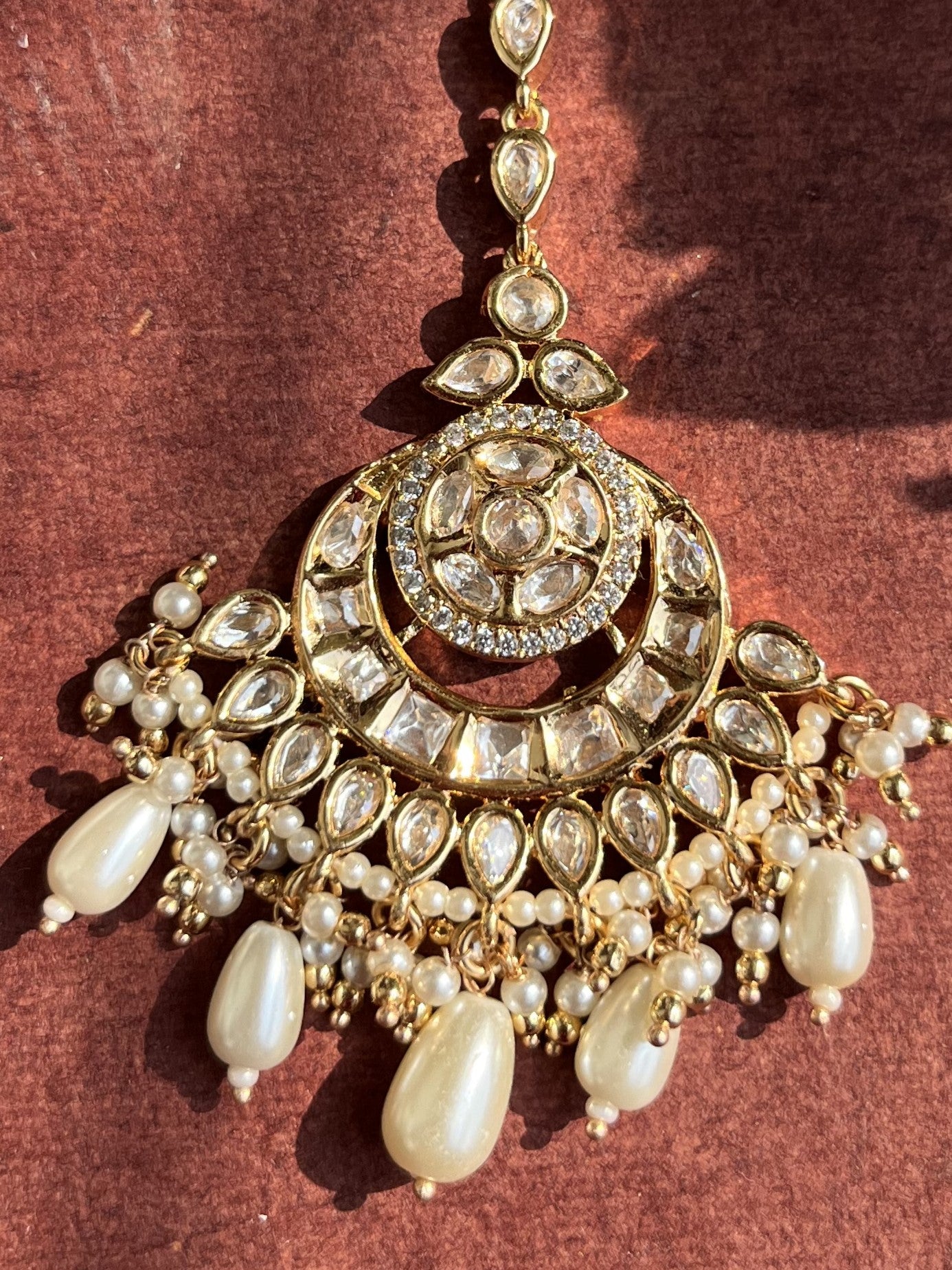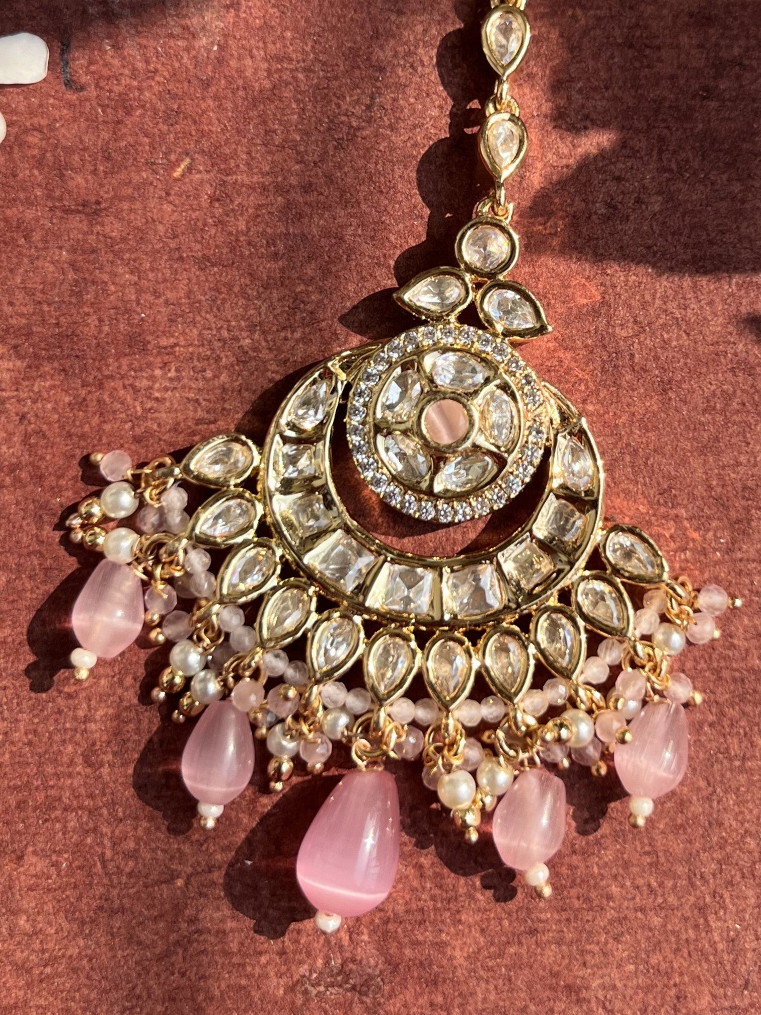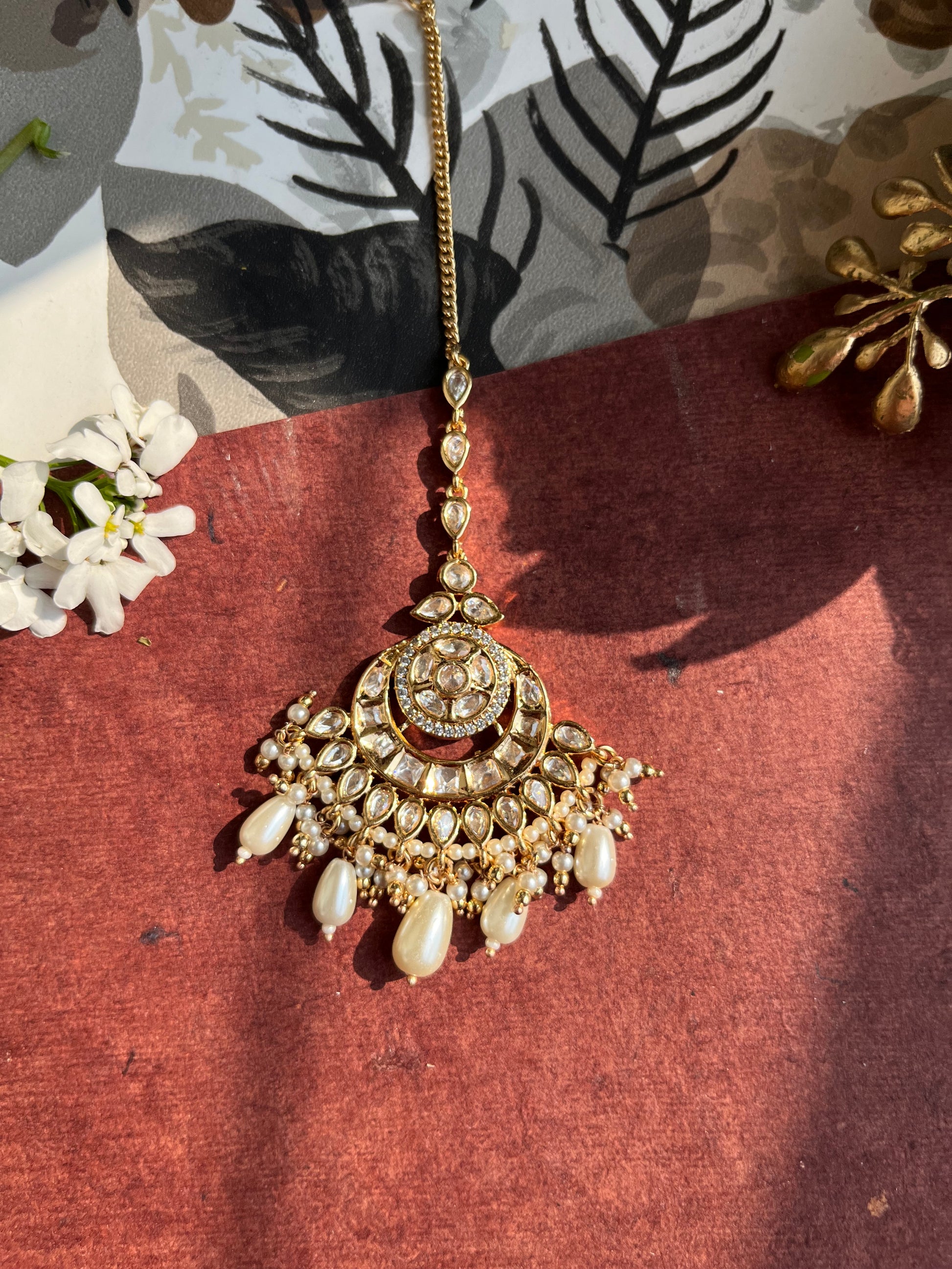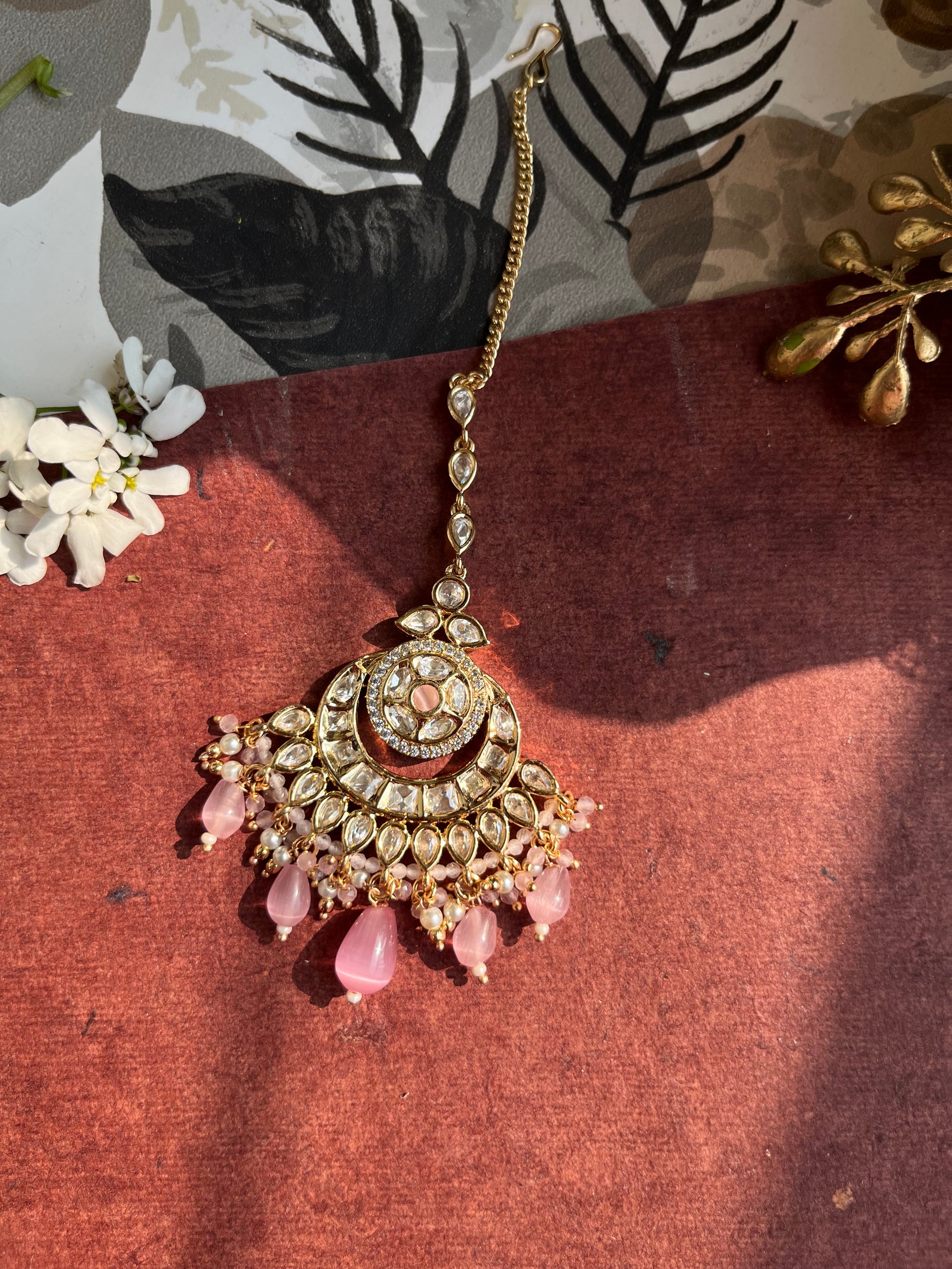 Product description : Mang tika designed in Real parab kundan with silver foiling and mona lisa stones bandhai.