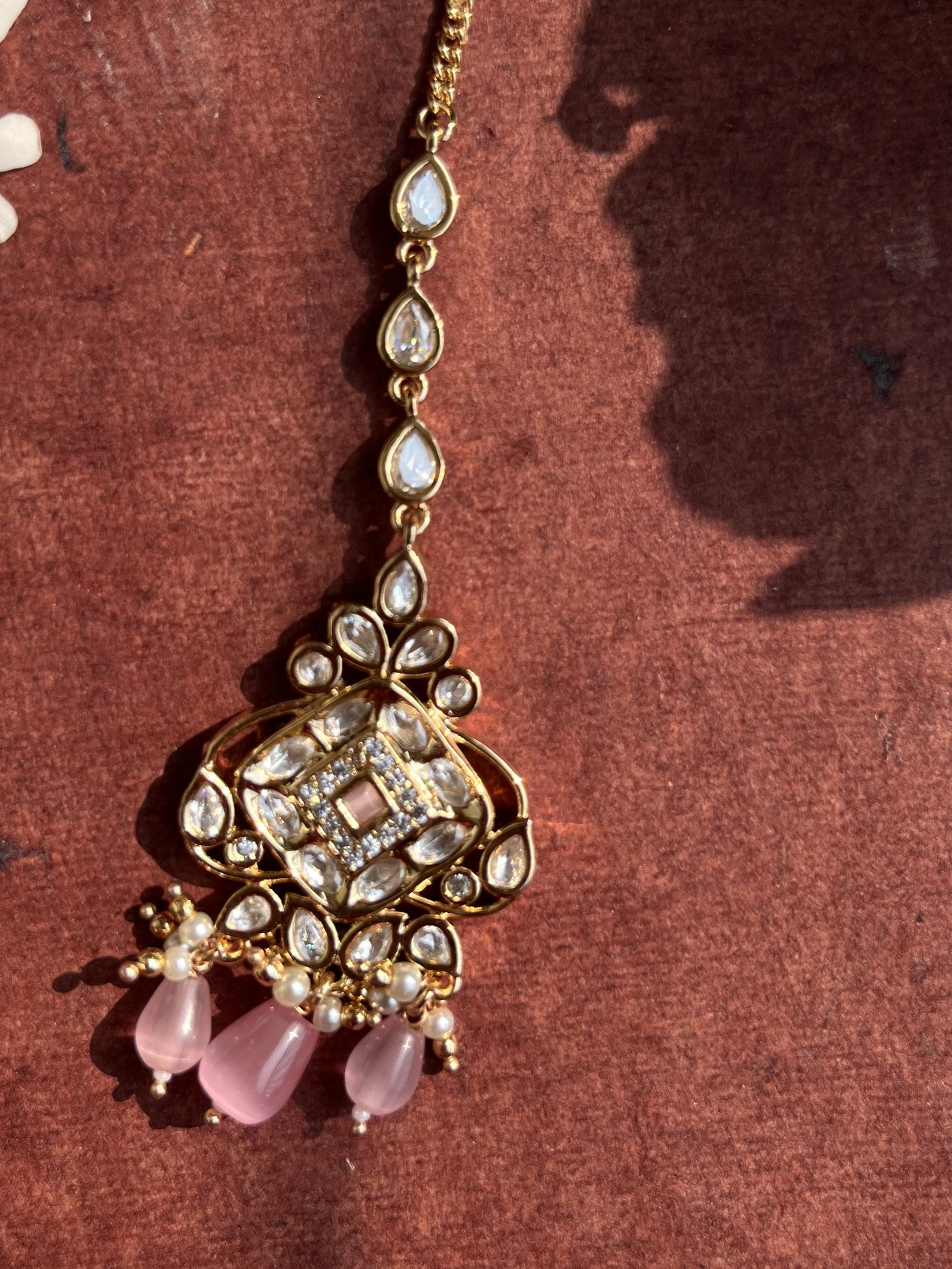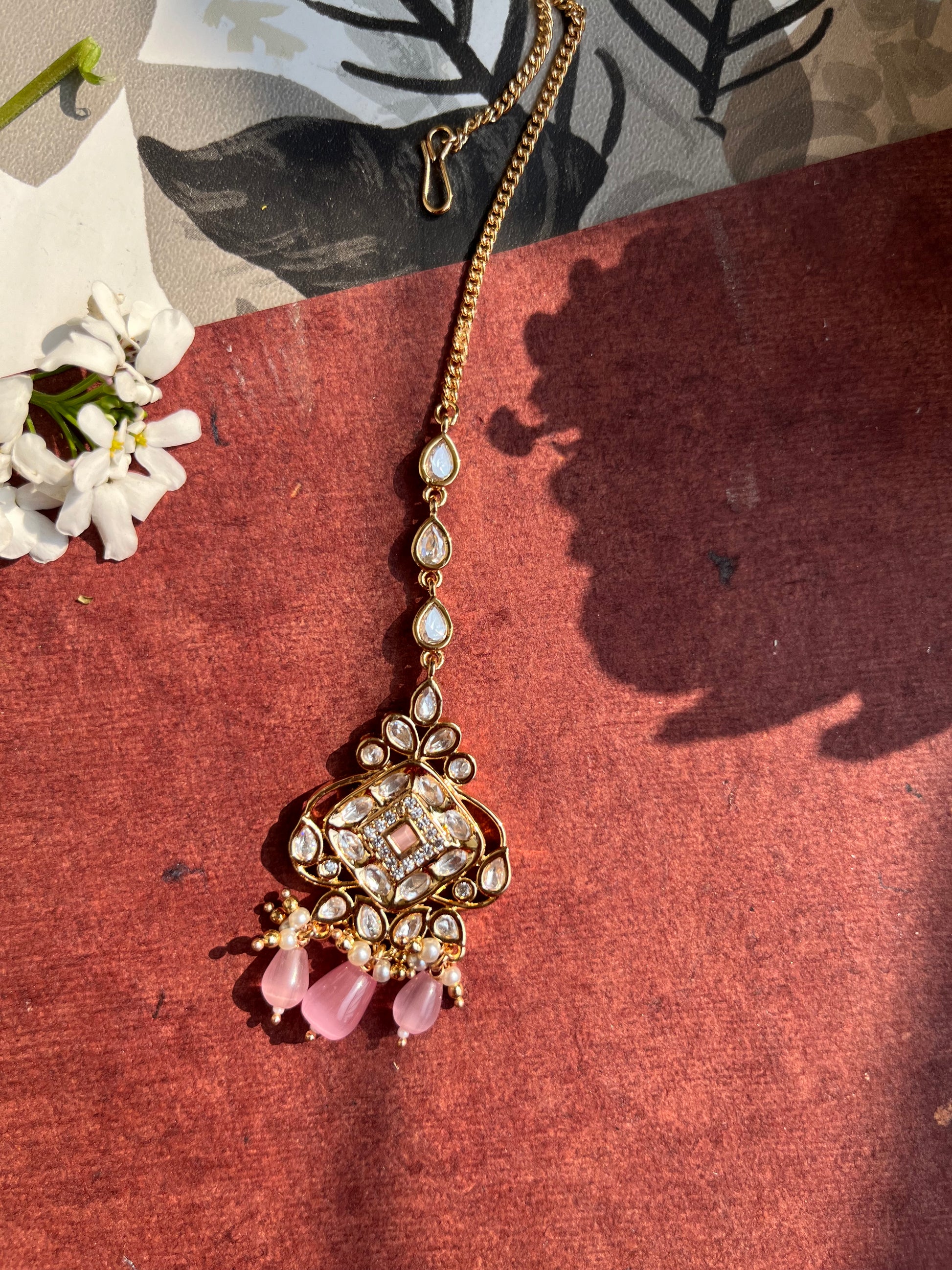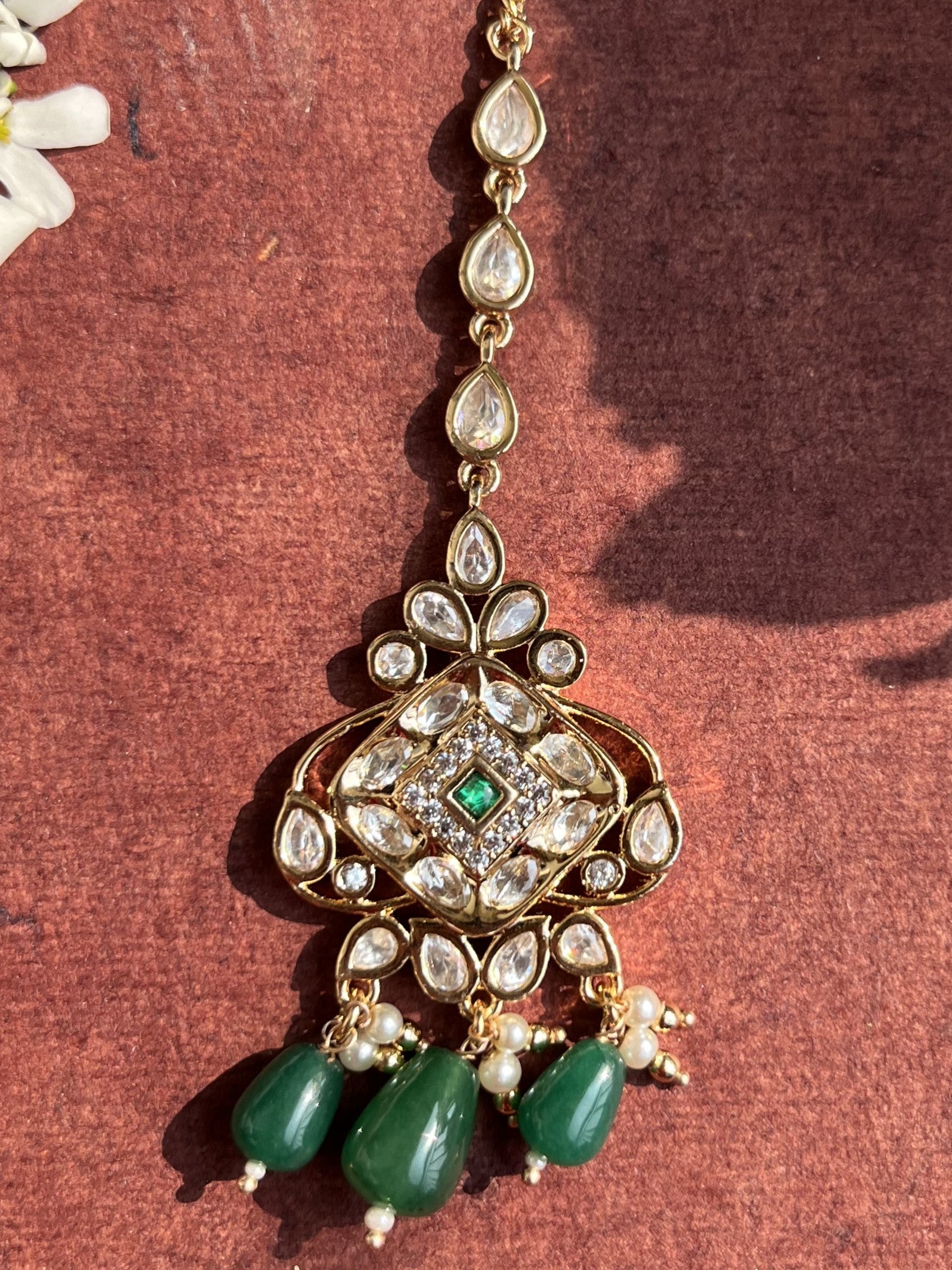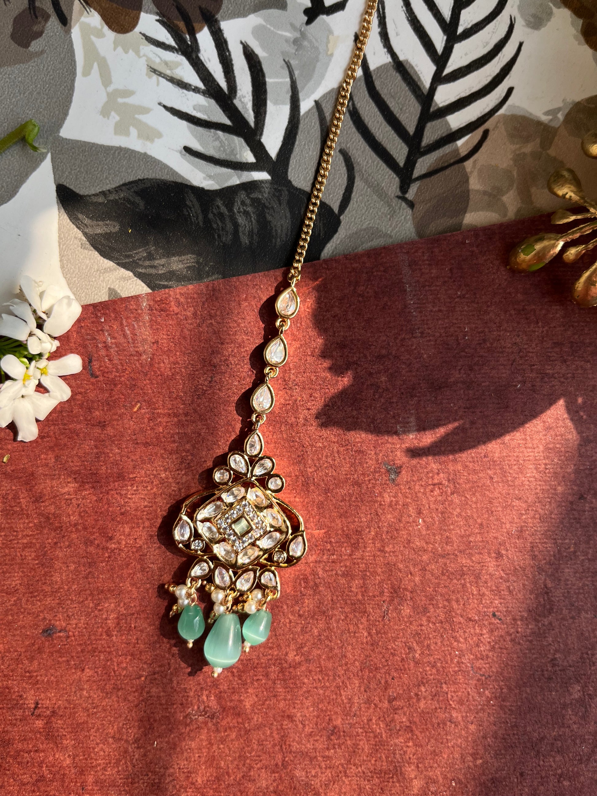 Product description : Mang tika designed in Real parab kundan with silver foiling and mona lisa stones bandhai