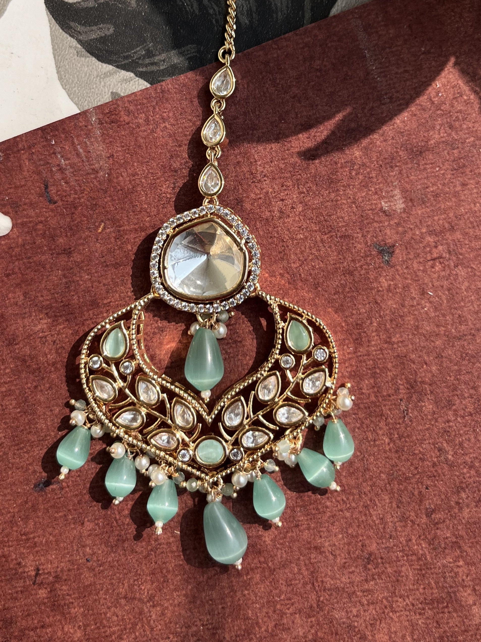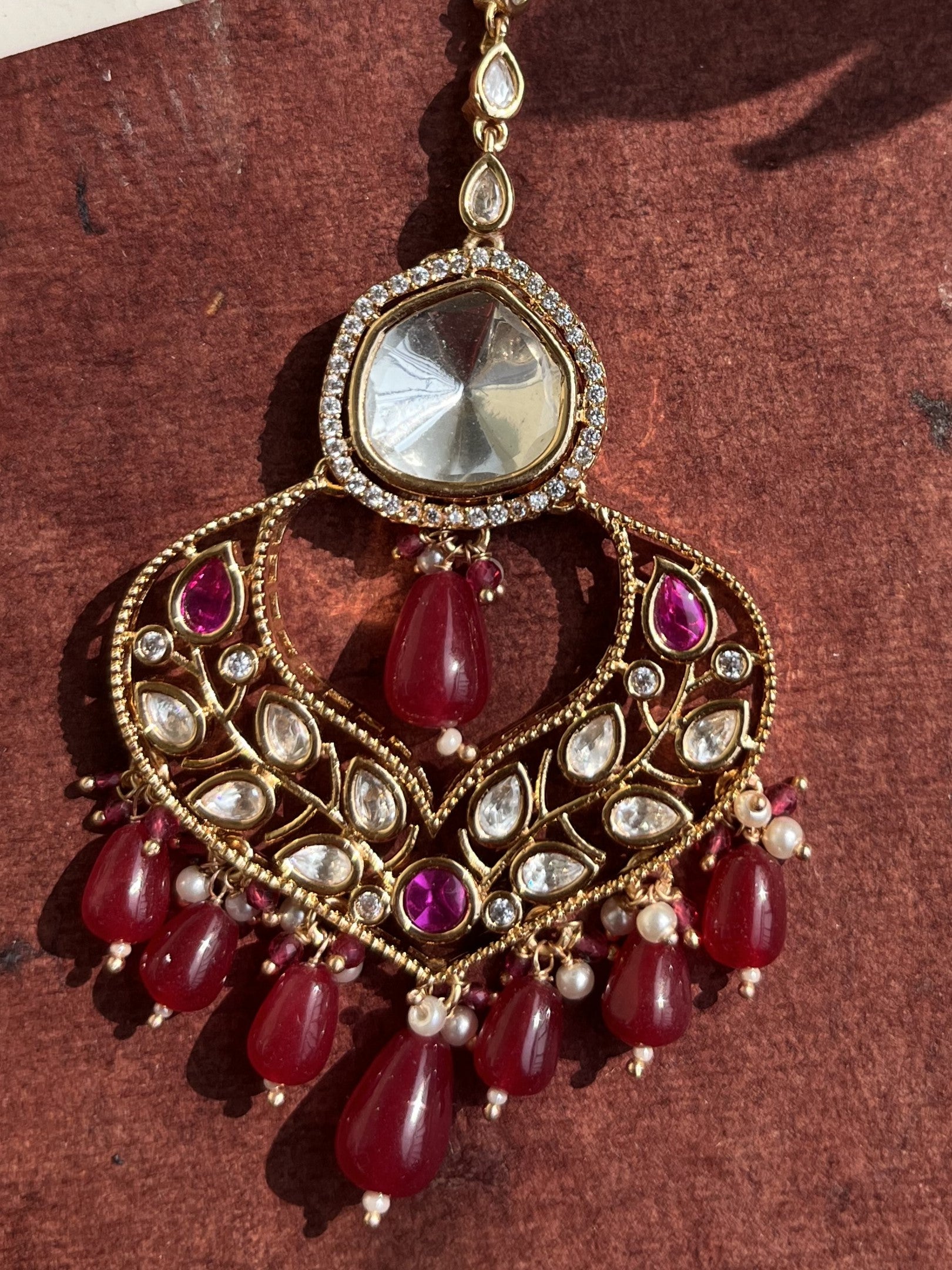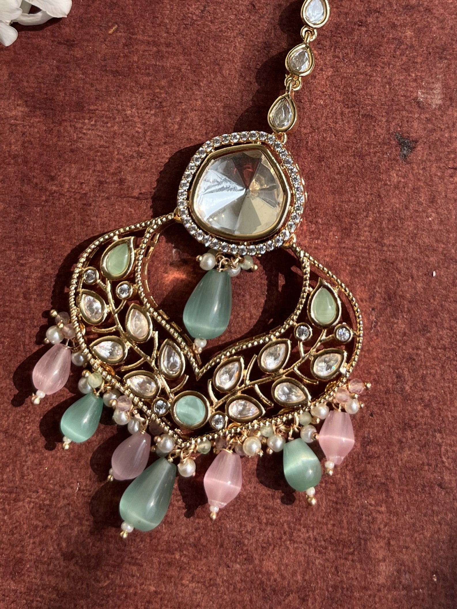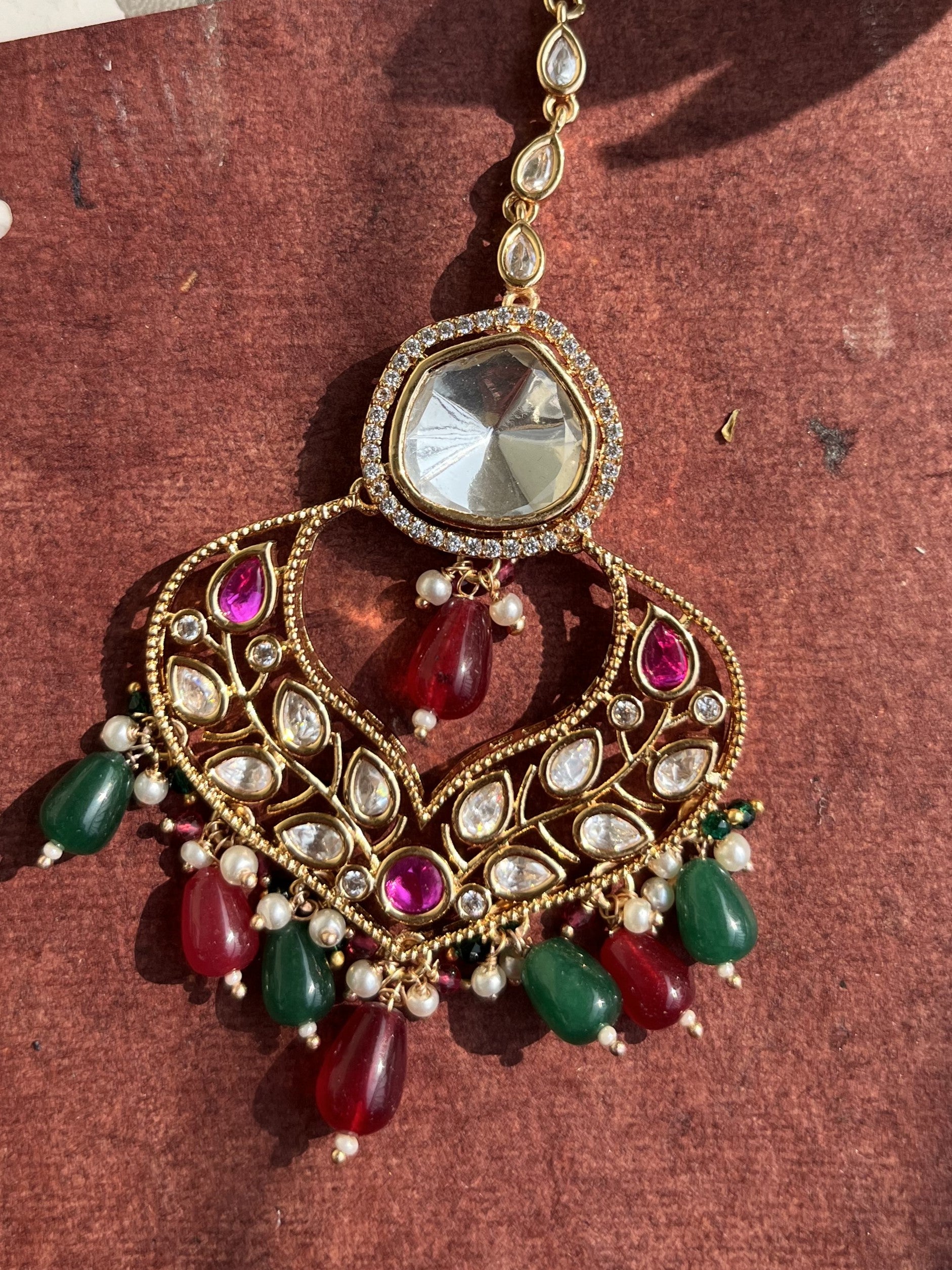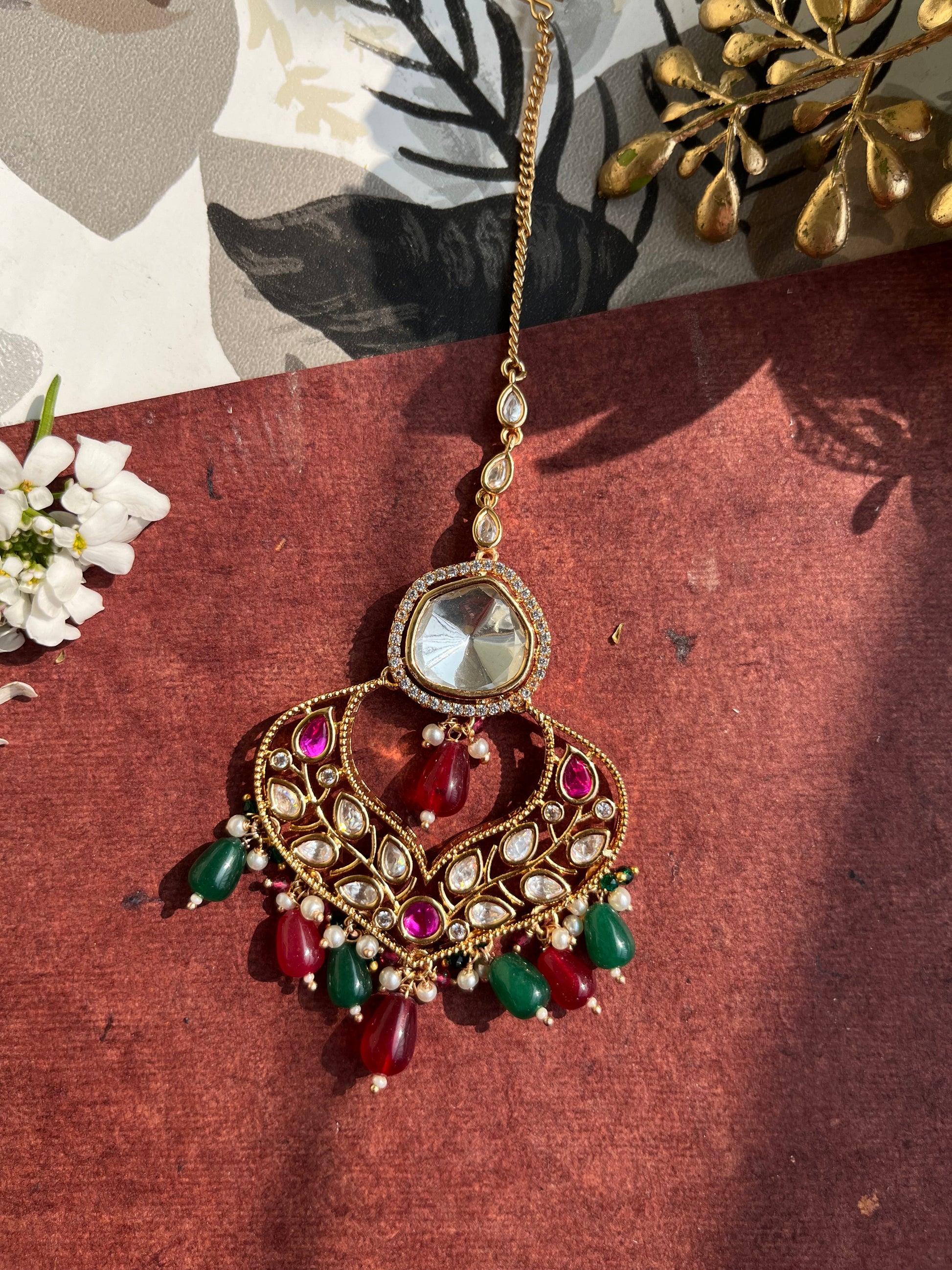 Product description : Mang tika designed in Real parab kundan with silver foiling and mona lisa stones bandhai