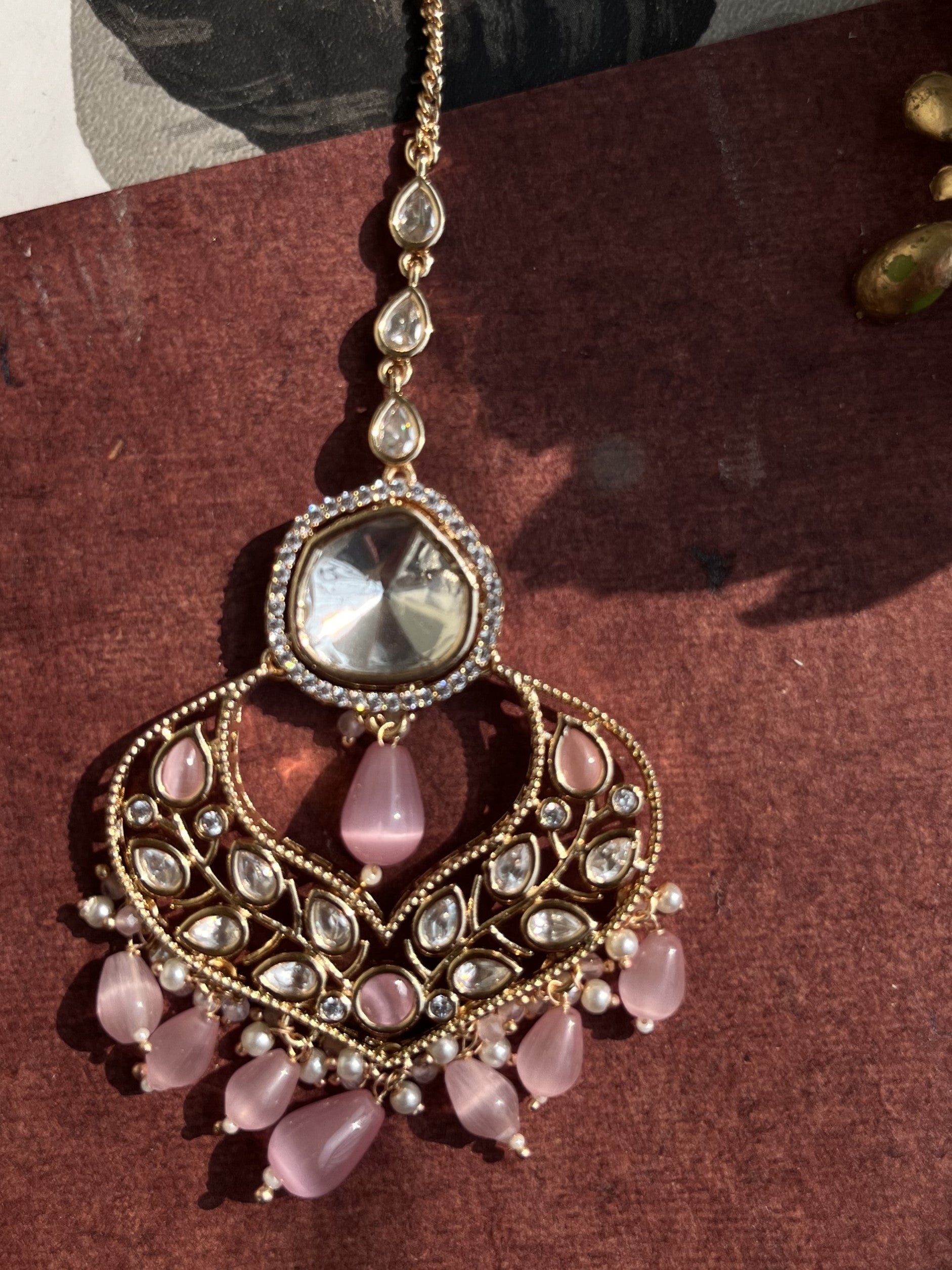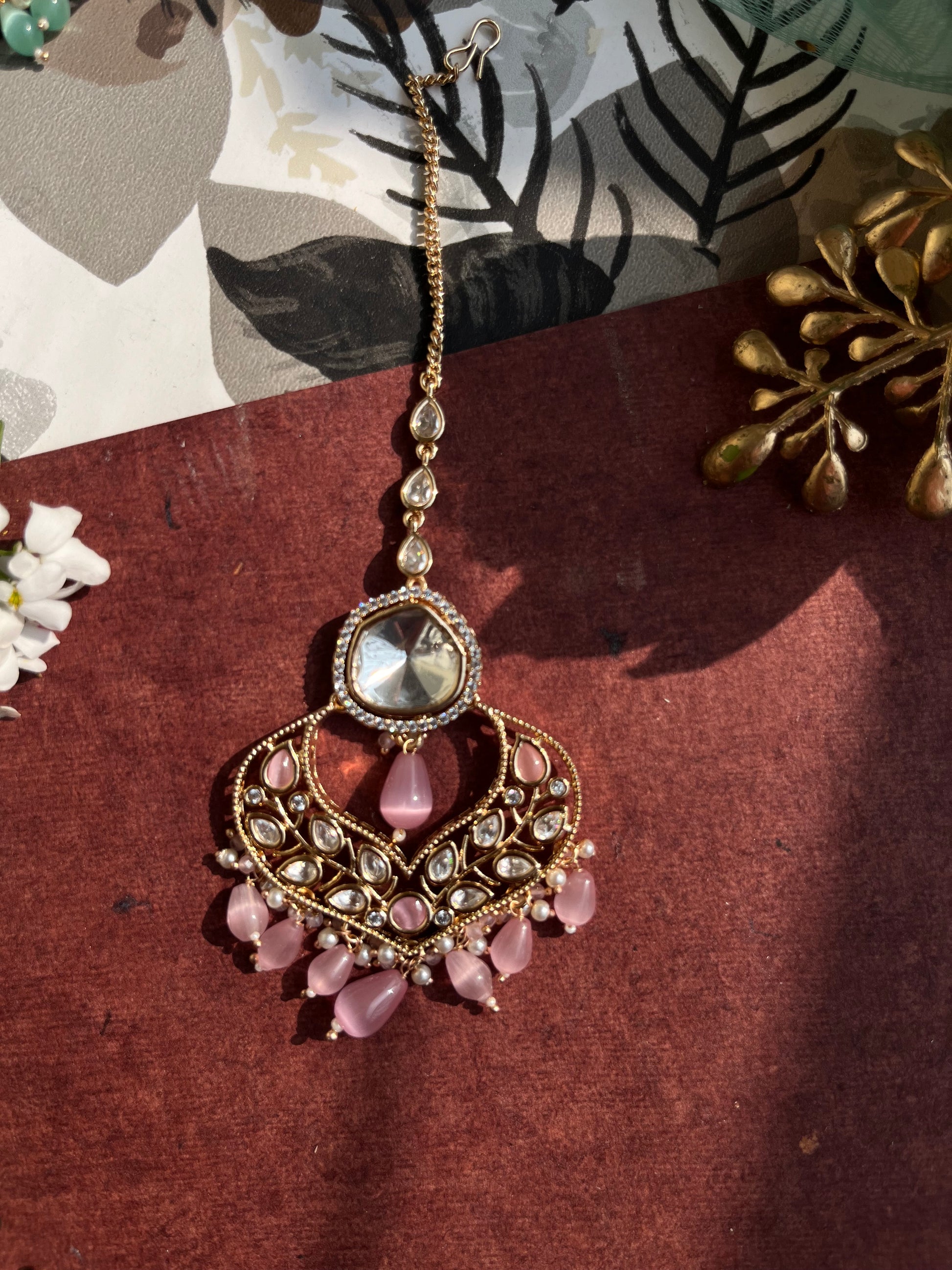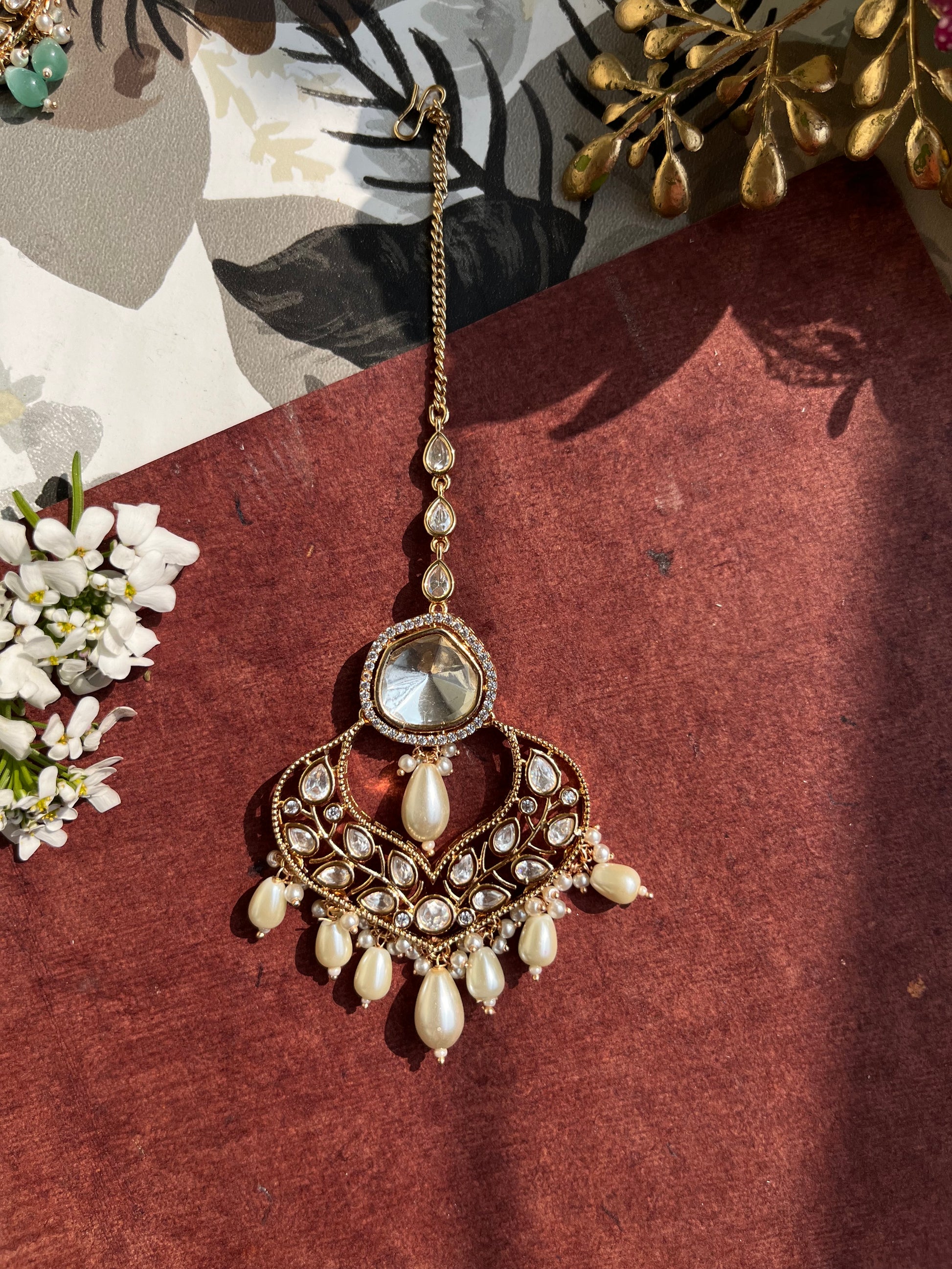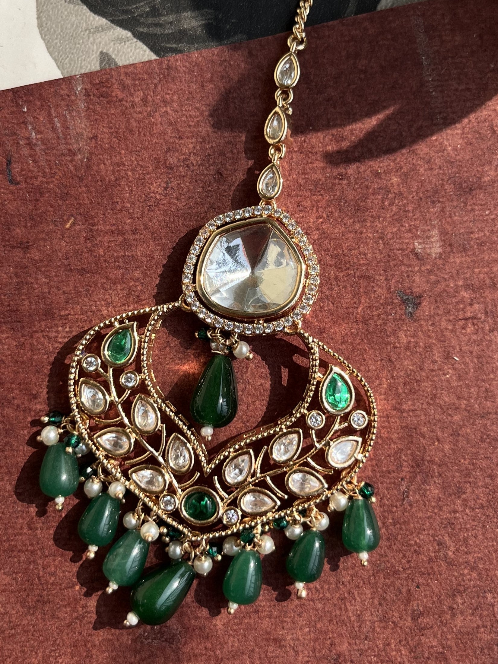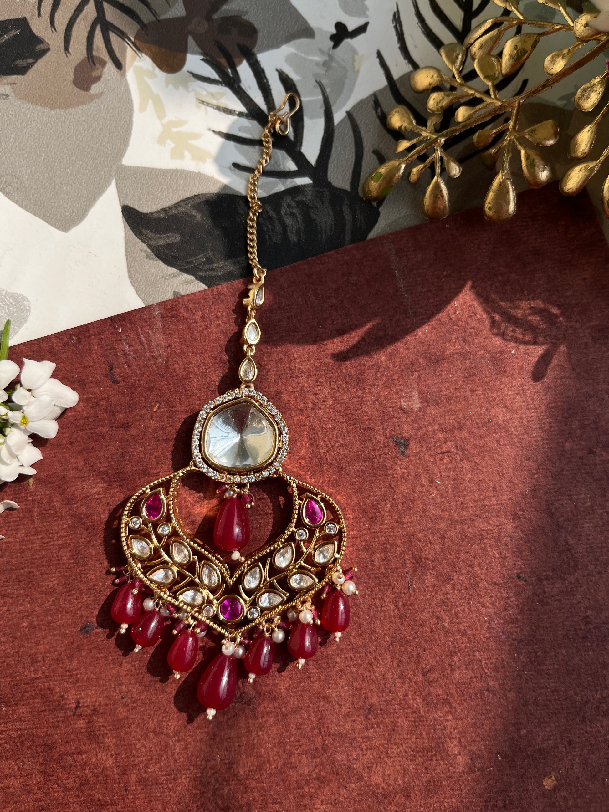 Product description : Mang tika designed in Real parab kundan with silver foiling and mona lisa stones bandhai
