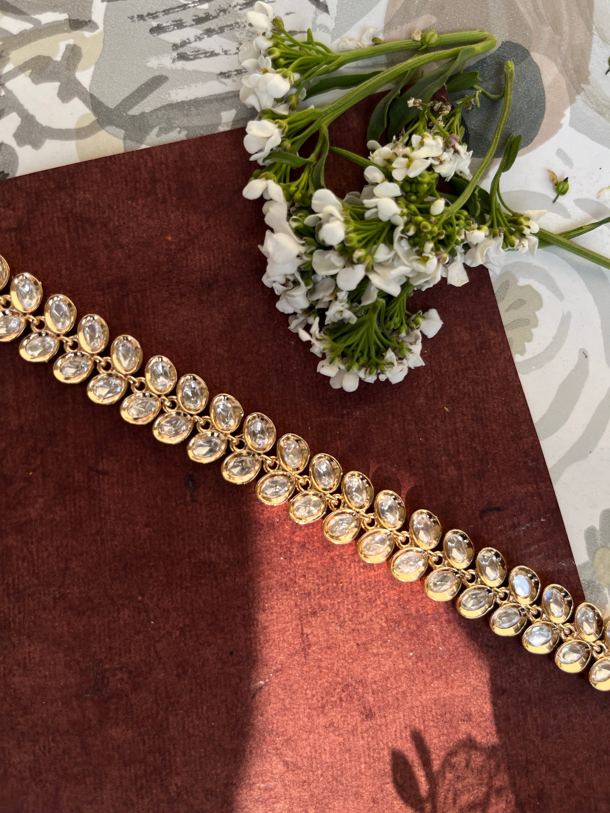 Product description : Mathapatti witn designed in Real parab kundan with silver foiling and mona lisa stones bandhai.
