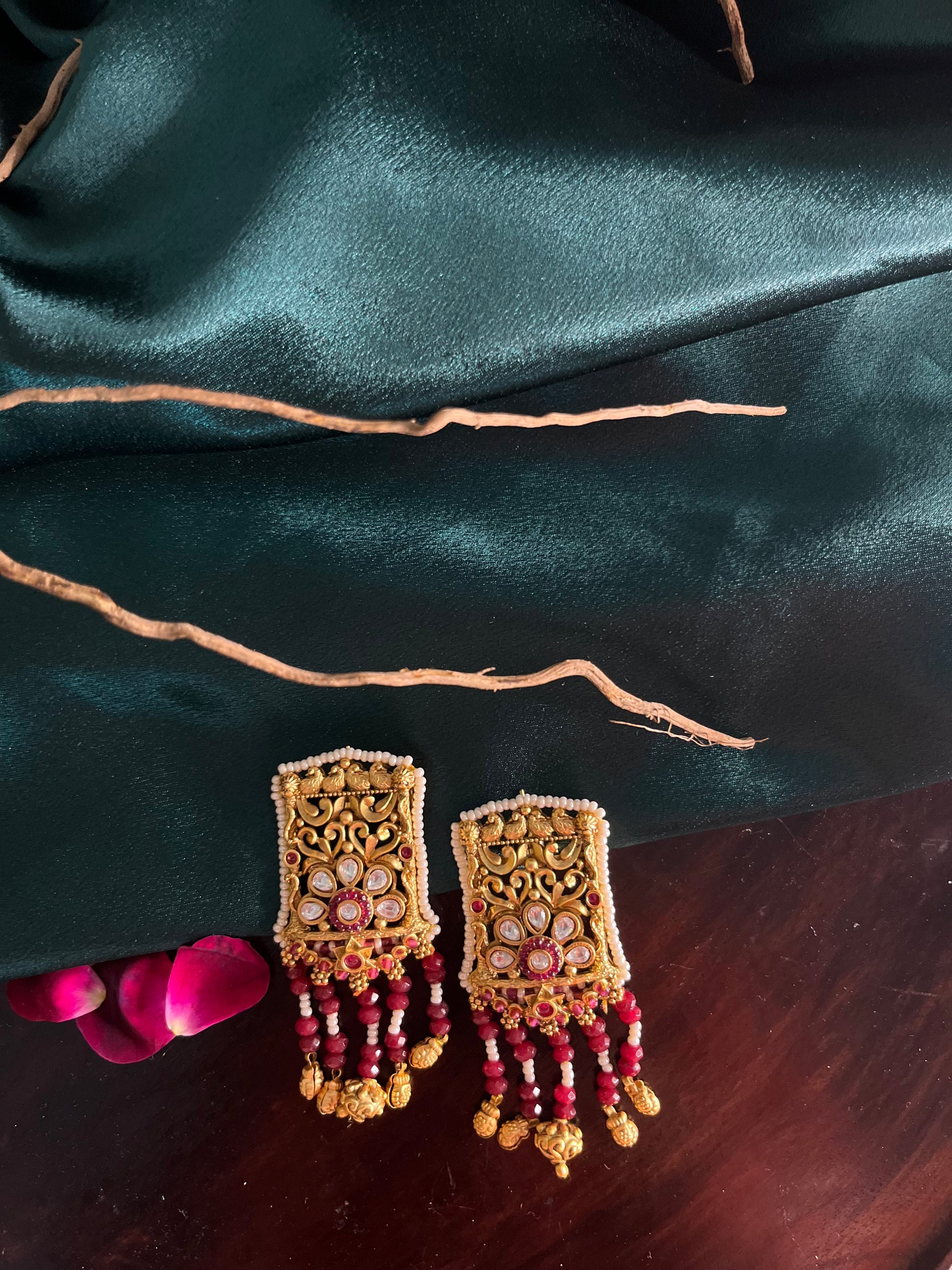 Product description : Rajwadi danglers with semi precious beads piroi