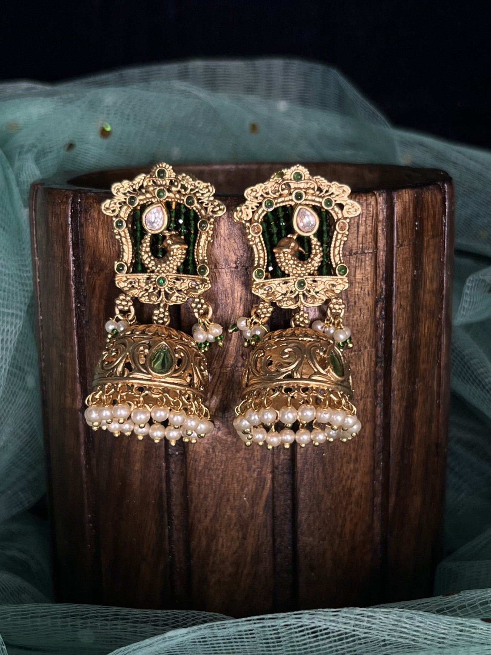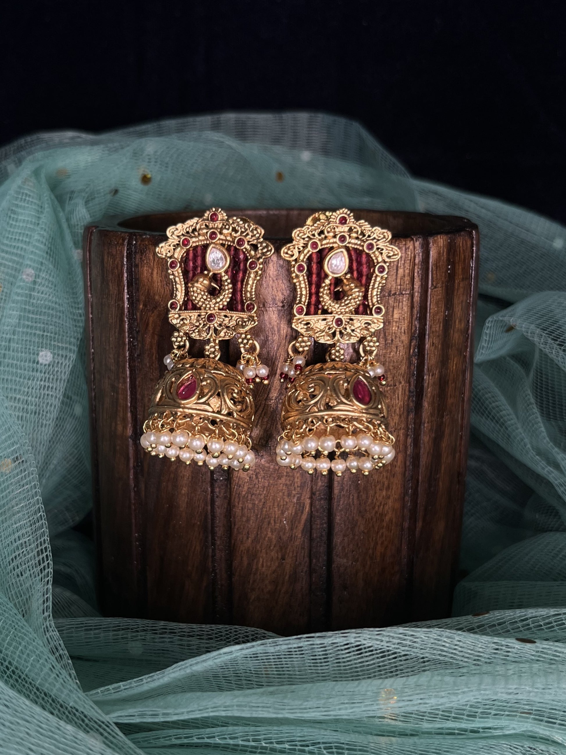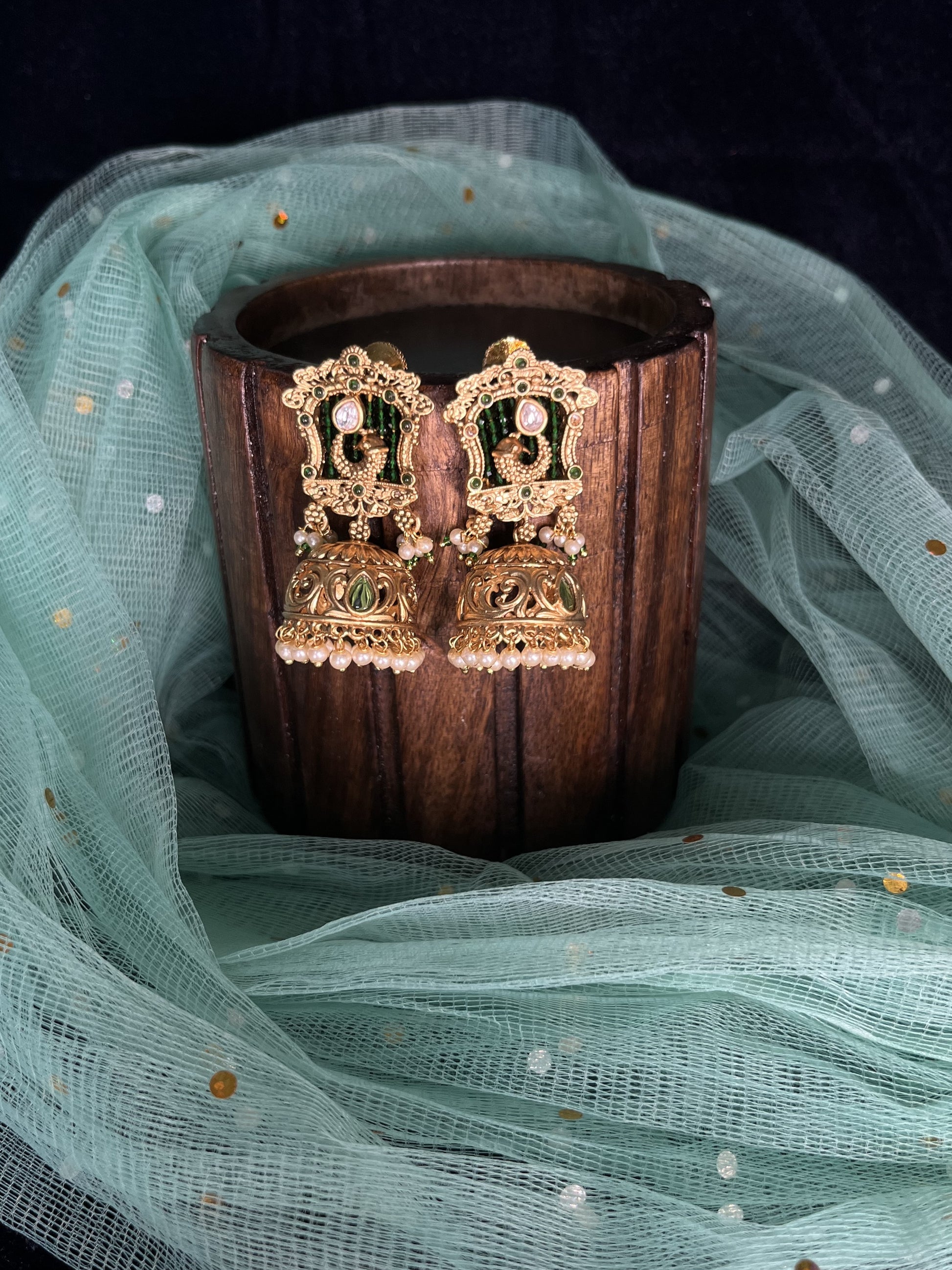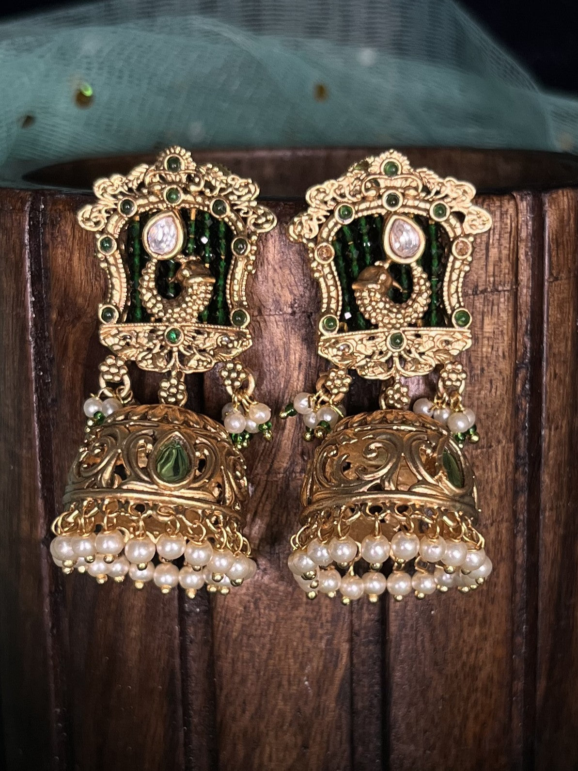 Product description : Rajwadi jhumkas with hydro beads piroi.