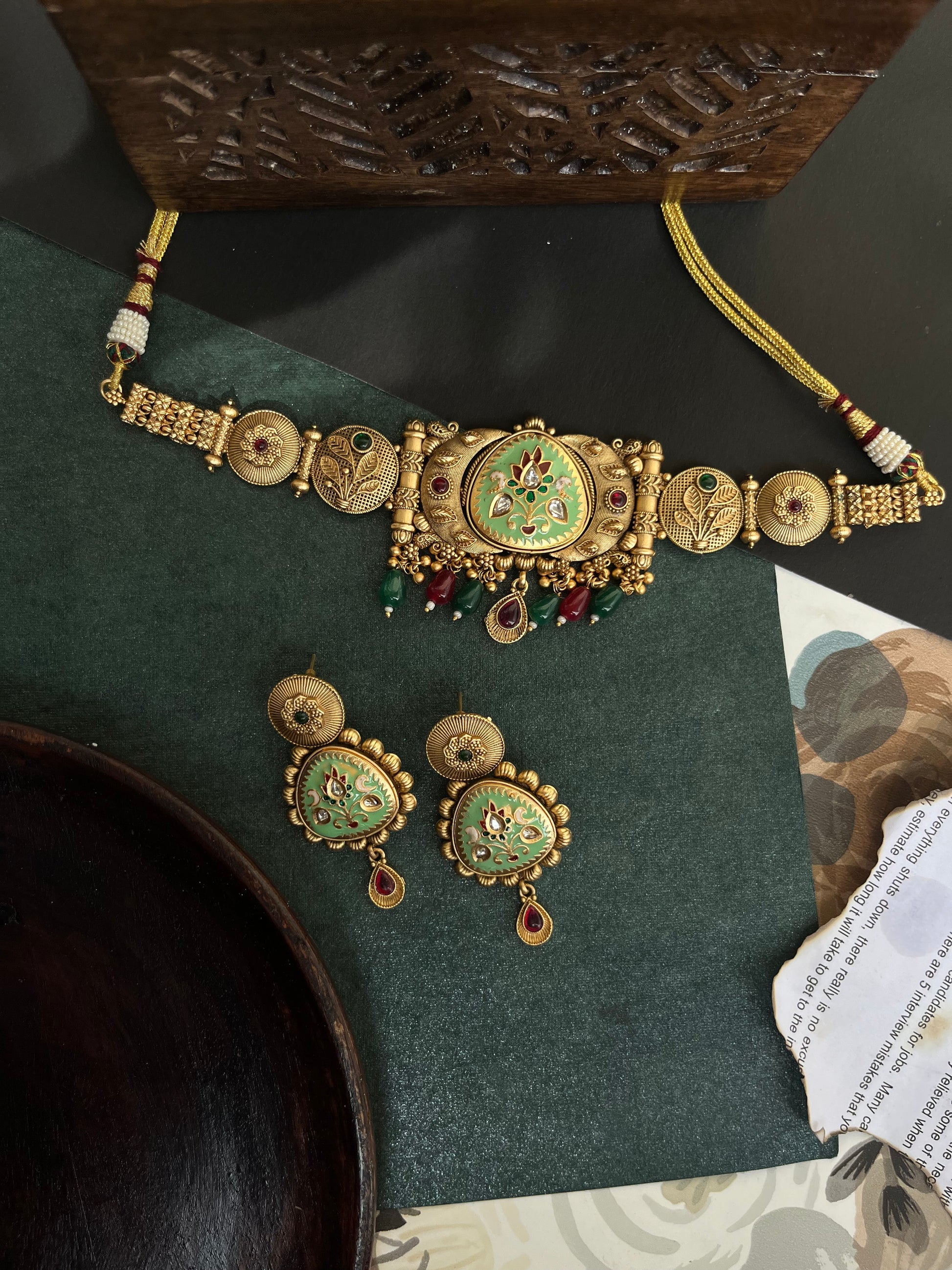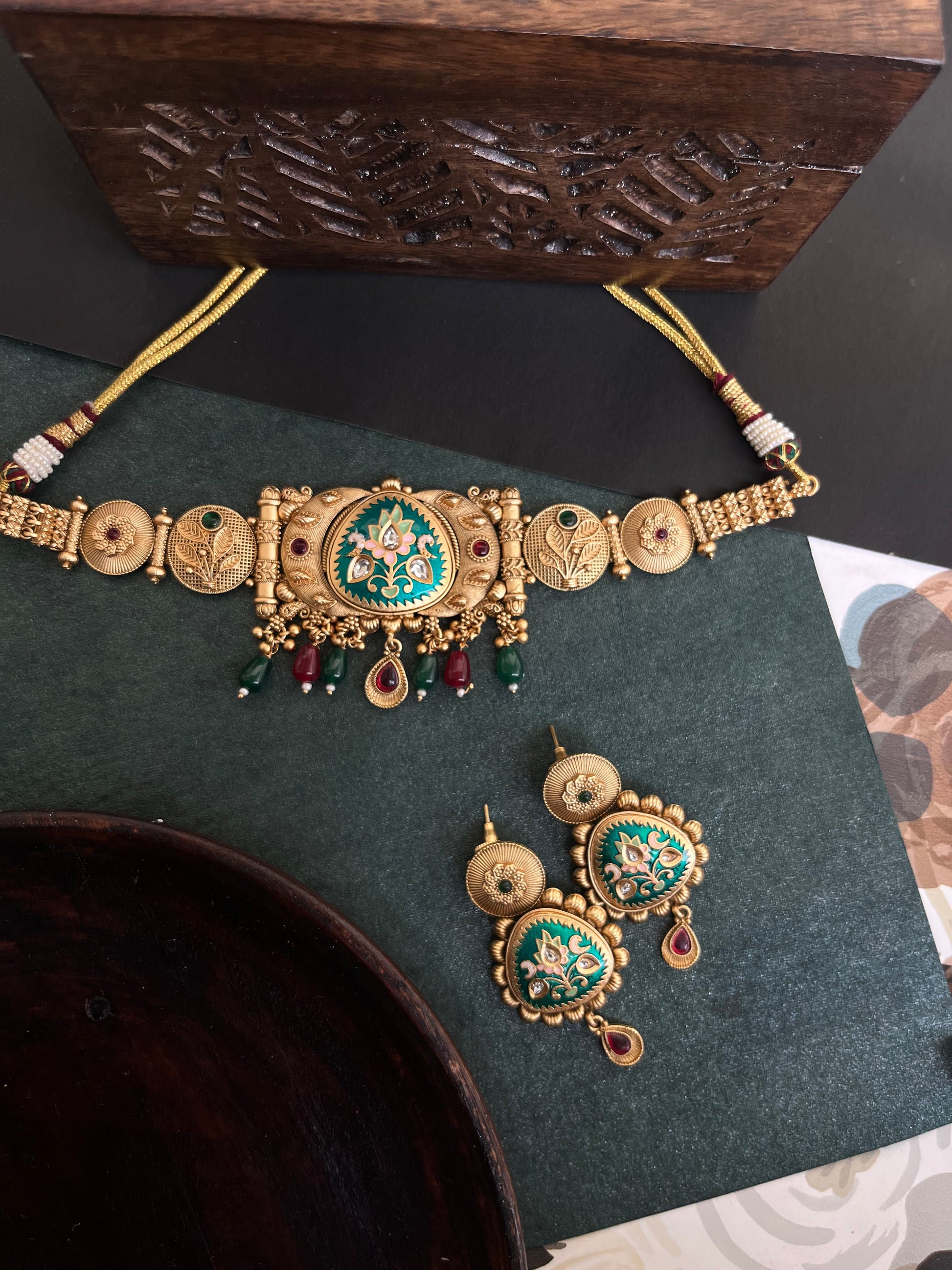 Rajwadi gold Meena choker