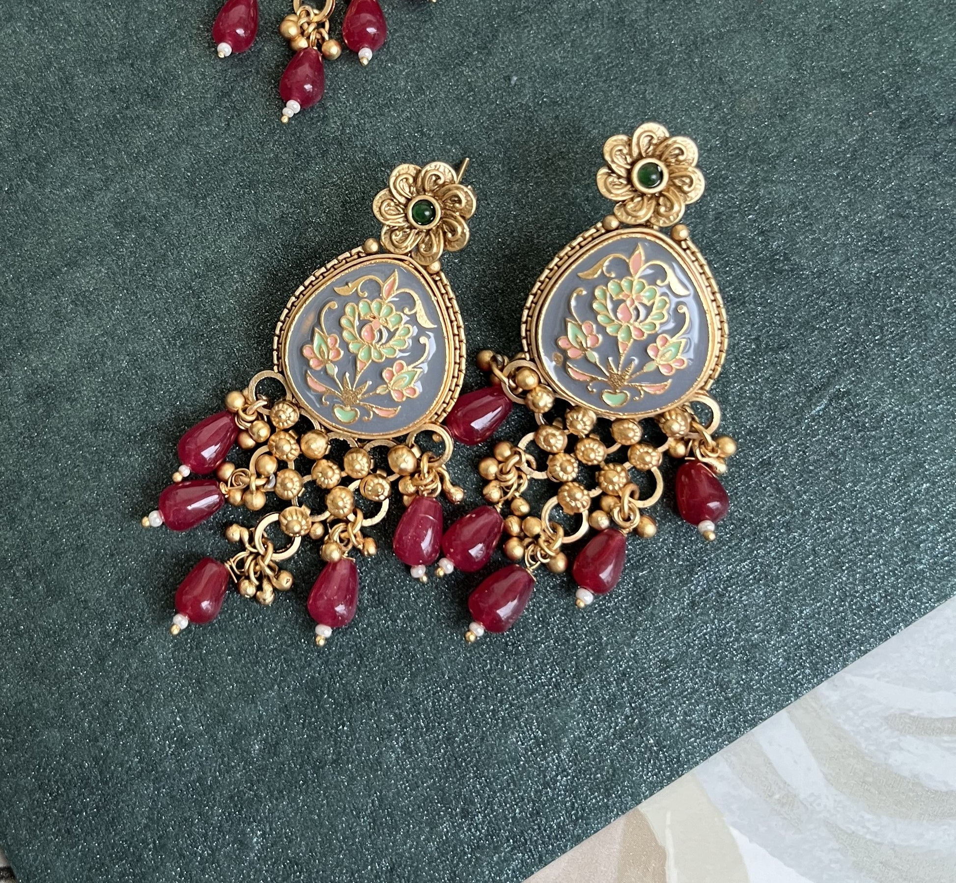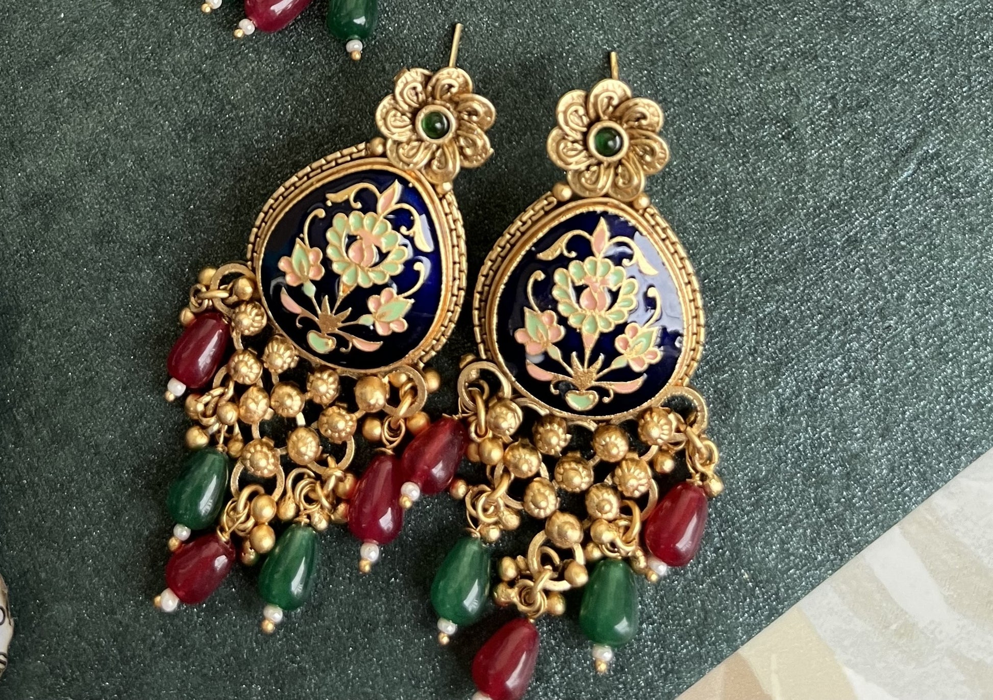 Product description : Rajwadi gold choker with kundan studded in the centre with hand painted meenakari.