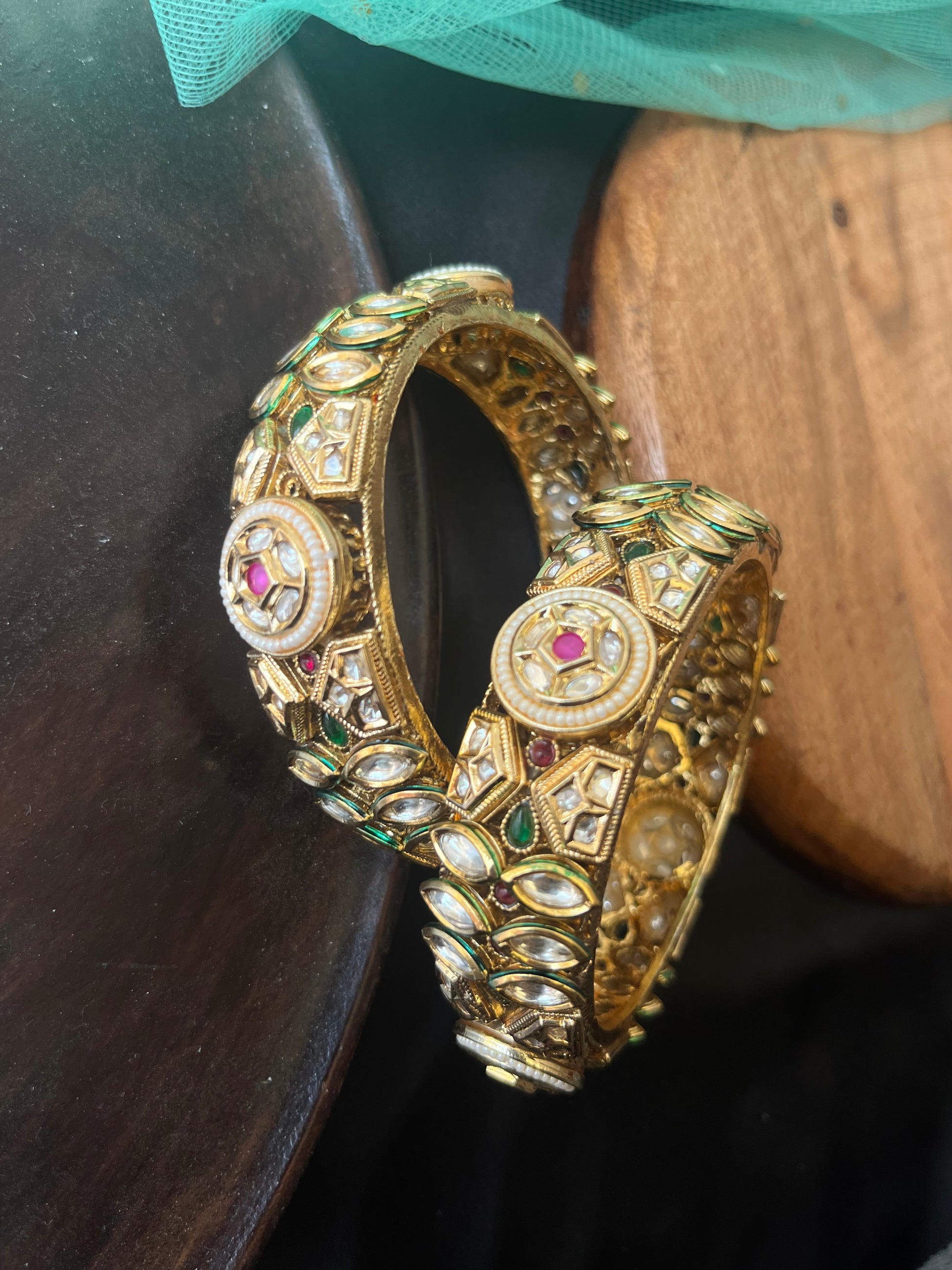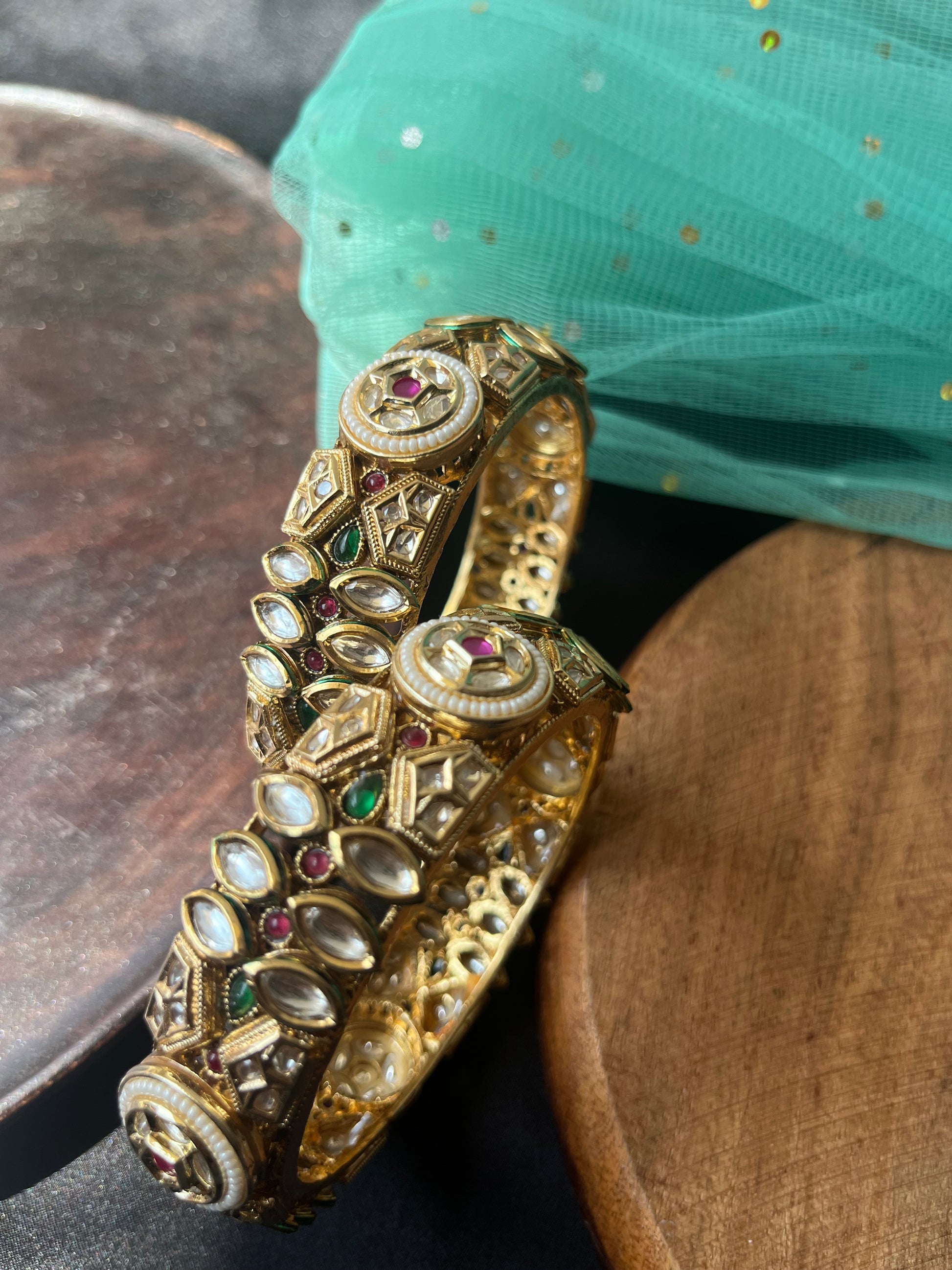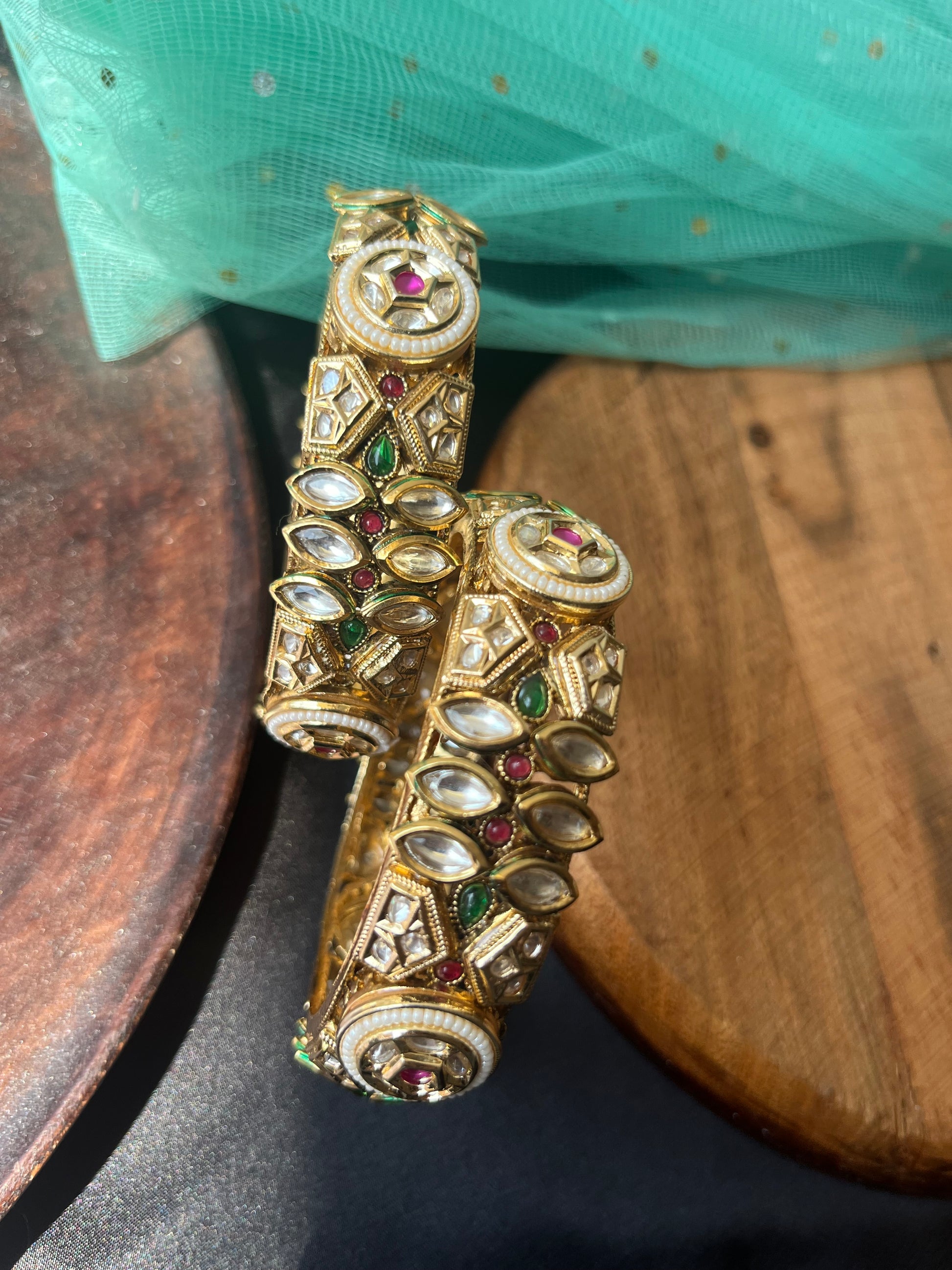 Product description : Pair of traditional uncut kundan multicoloured kada